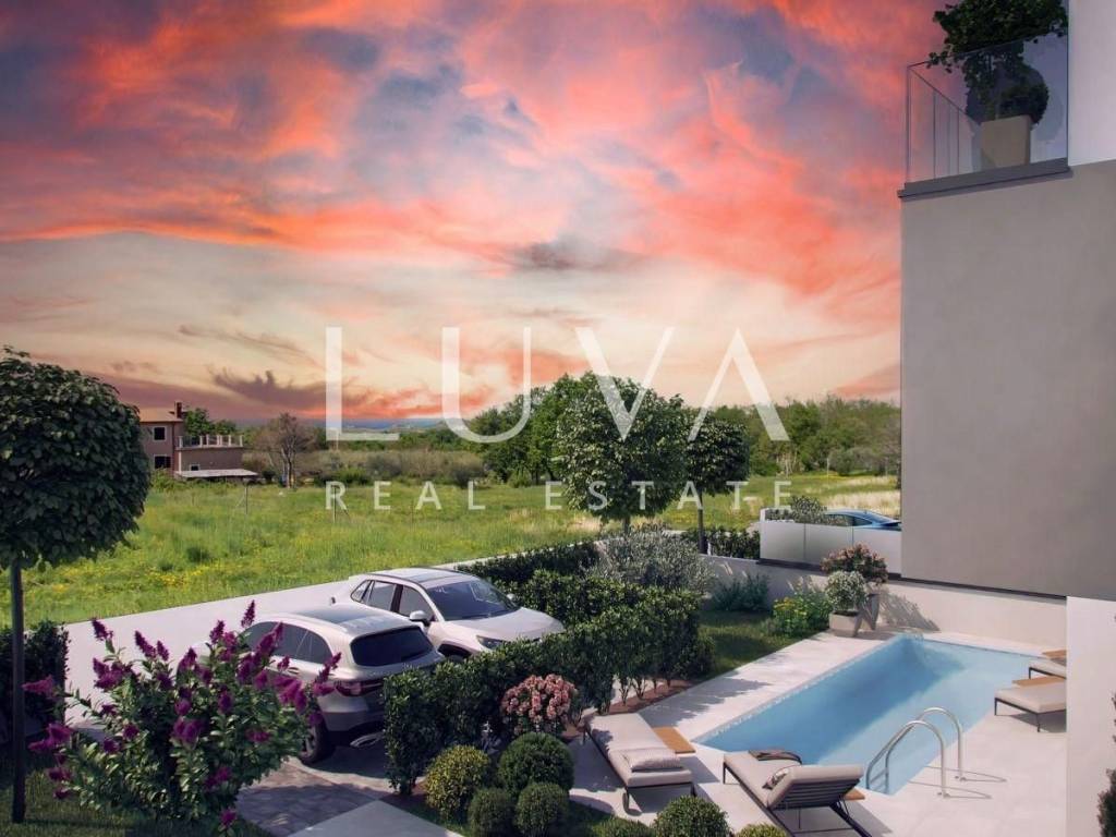 Prodaje se moderna novogradnja u malom mirnom naselju Žbandaju, blizu Poreča. Ova luksuzna kuća s pogledom na more pruža savršenu ravnotežu privatnosti i blizine svim ključnim sadržajima. Ova moderna kuća dizajnirana je za uživanje u otvorenom prostoru i prirodnom svjetlu. Velike staklene površine povezuju interijer s prirodom i pružaju prekrasne panoramske poglede na more i zelenilo koje okružuje kuću, stvarajući jedinstven osjećaj spokoja i povezanosti s okolišem.