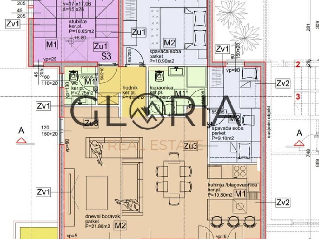 - kuhinja i blagovaonica 19,80 m2