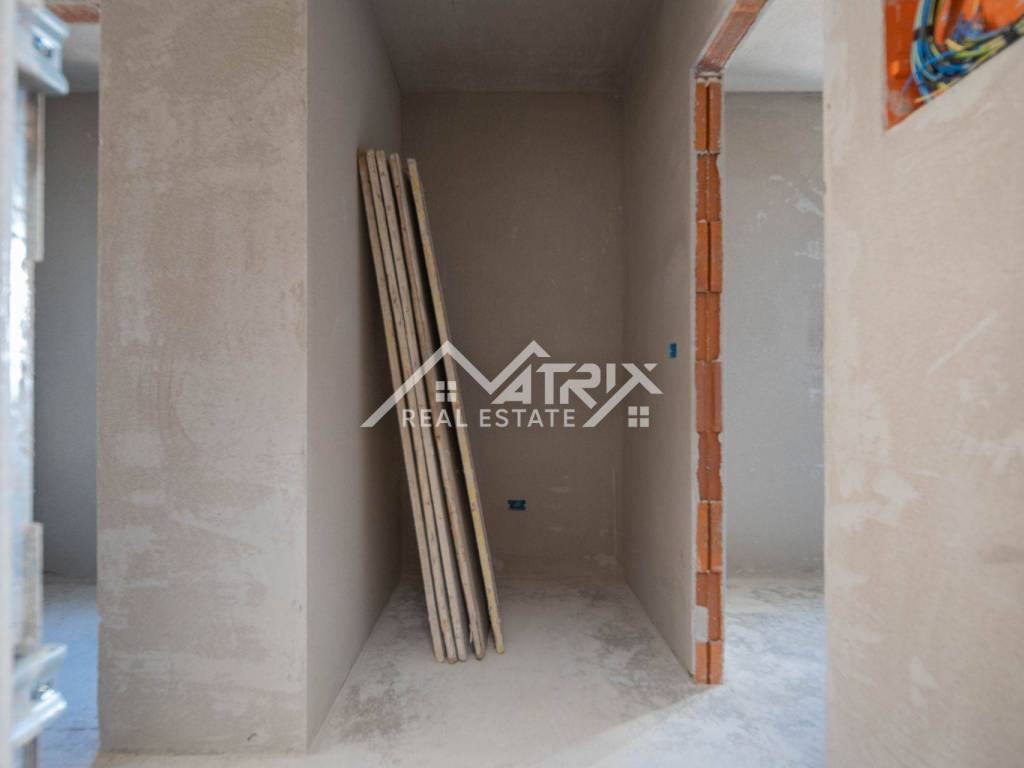 U Puli, u mirnom i iznimno traženom naselju Valmade, nalazi se ovaj stan na drugom, ujedno i posljednjem katu manje stambene zgrade s ukupno tri stambene jedinice. Riječ je o kvalitetnoj novogradnji modernog standarda, s naglaskom na udobnost, funkcionalan raspored i visoku razinu izvedbe. Planirani završetak radova je krajem 2026. godine, što kupcu daje priliku za kupnju u ranoj fazi gradnje i mirno planiranje useljenja ili investicije.