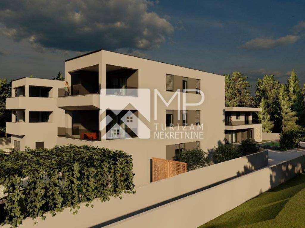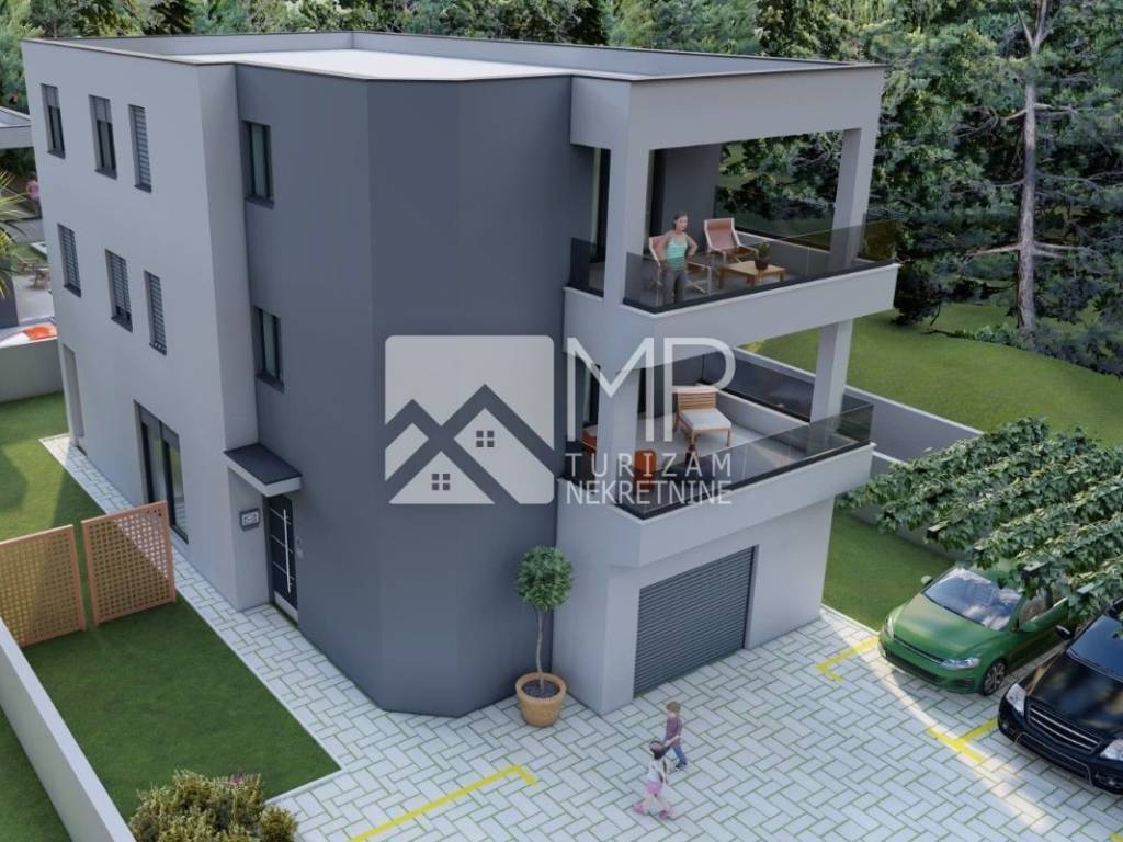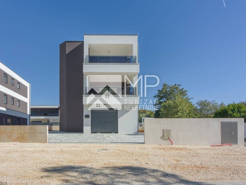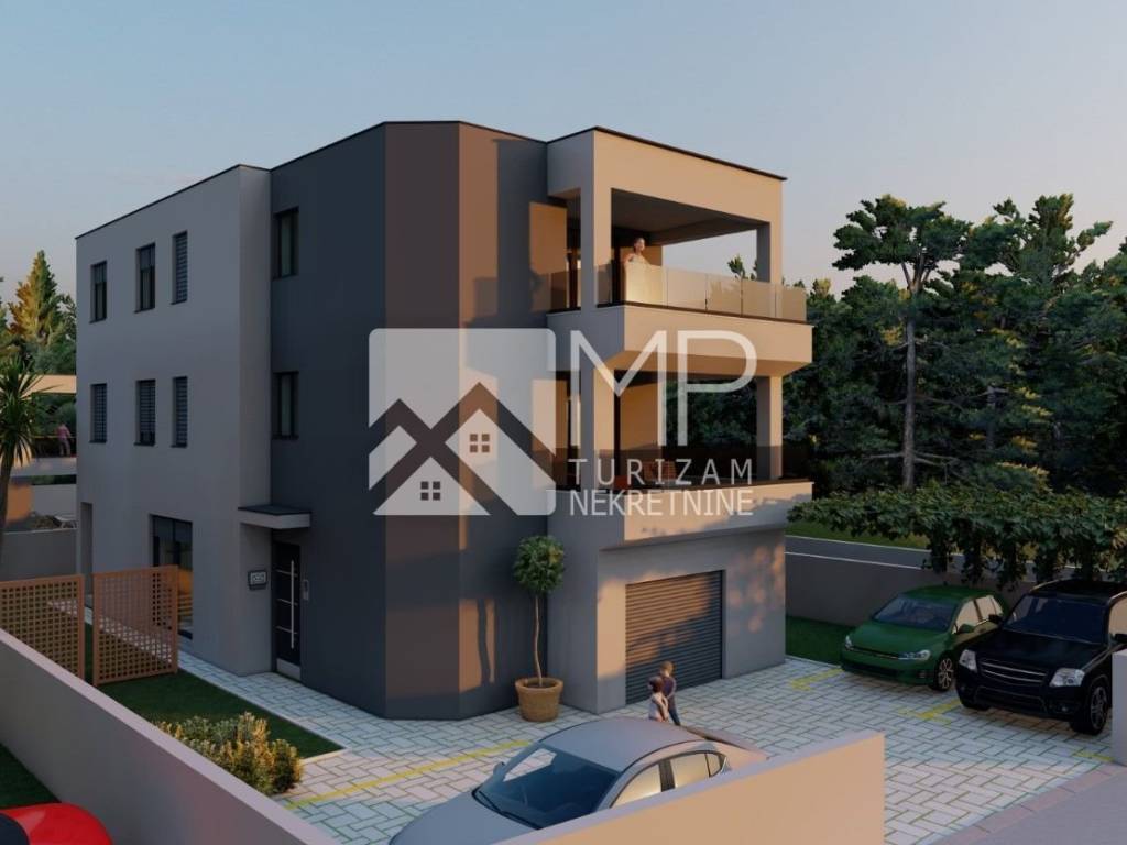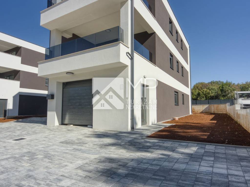 Medulin - moderan objekt novogradnje, razveden u tri etaže ( prizemlje, I. i II. kat ), sa ukupno tri stambene jedinice, u naravi na svakoj etaži po jedan stan.