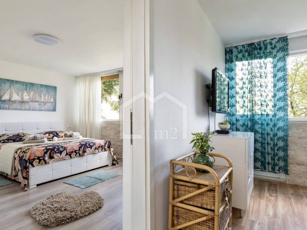 Nalazi se na visokom prizemlju stambene zgrade na mirnom području uz more s prekrasnim pogledom na luku i obližnje otoke smješten u vrlo mirnom i lijepom susjedstvu zvanom "Firule" / "Bačvice", u neposrednoj blizini teniskih terena i prelijepih pješčanih plaža i obale u blizini.