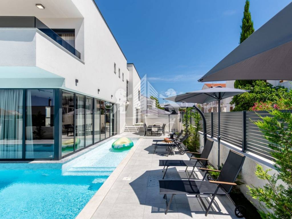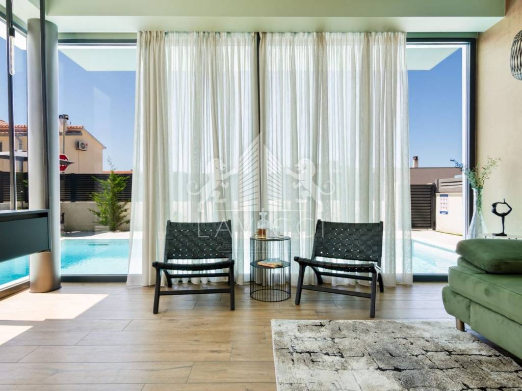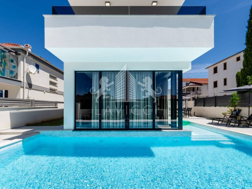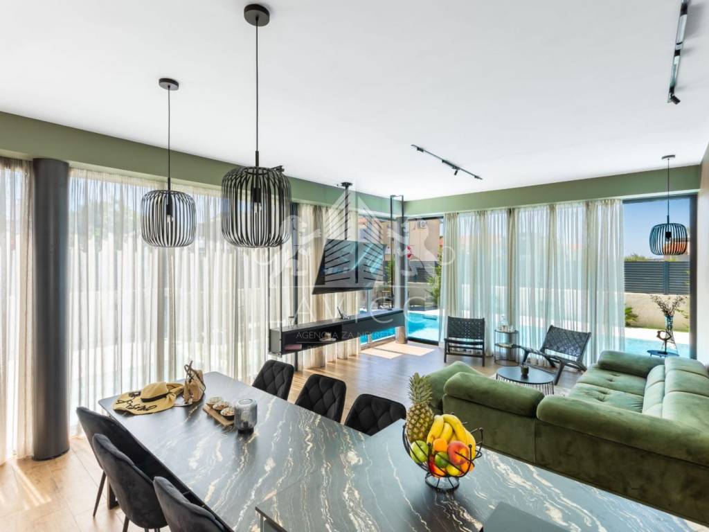 Na prodaju je moderna kuća s bazenom i panoramskim pogledom na more, smještena u Vrsima, u Zadarskoj županiji, na izuzetno atraktivnoj lokaciji, svega 200 metara od mora i plaže.