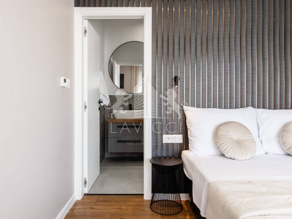 Dodatna vrijednost ove nekretnine je krovna terasa površine cca 75 m², osmišljena kao ekskluzivna zona za opuštanje i druženje, s prekrasnim panoramskim pogledom na more, uz izvedene pripreme za jacuzzi, što dodatno podiže razinu luksuza i privatnosti.