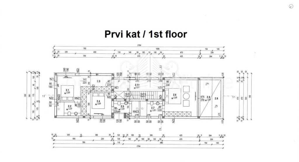 U prizemlju površine 126,40 m² nalazi se reprezentativni ulazni prostor, moderno uređena kuhinja s blagovaonicom i prostranim dnevnim boravkom otvorenog koncepta, gostinjski WC te garaža s dva parkirališna mjesta. Unutarnje stepenice vode na prvi kat površine 110,40 m², gdje su smještene tri prostrane spavaće sobe, pri čemu svaka soba ima vlastitu en-suite kupaonicu, dok master spavaća soba dodatno raspolaže i natkrivenom terasom s pogledom na more.