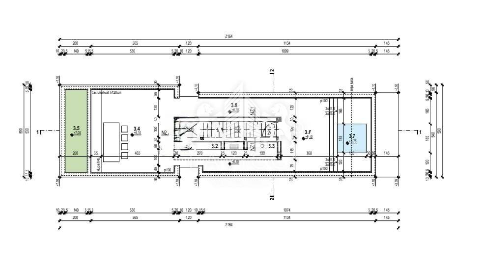 Kuća je izgrađena na zemljištu površine 411 m², a prostire se na dvije etaže i krovnu terasu, ukupne bruto stambene površine 311,80 m².