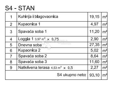 Novogradnja 93,10 m (3S+DB), loggia + natkrivena terasa, završetak 09/2026