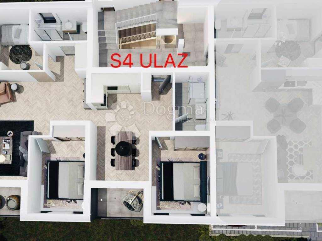 Stan je osmišljen za komforan obiteljski život-otvoreni dnevni dio s blagovaonicom i kuhinjom, 3 spavaće sobe, 2 kupaonice te dodatni vanjski prostori (loggia i natkrivena terasa) za opuštanje i druženje što ga čini idealnim za obiteljski život ili kao kvalitetnu dugoročnu investiciju.