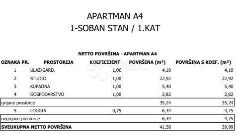 Poslovno-stambena zgrada sastoji se od ukupno pet etaža. U prizemlju su predviđeni poslovni prostori, dok su preostale četiri etaže namijenjene stambenim jedinicama pažljivo projektiranih tlocrta. U podzemnoj etaži (-1) osigurana su garažna parkirna mjesta za buduće stanare, čime se dodatno povećava razina komfora i funkcionalnosti stanovanja.