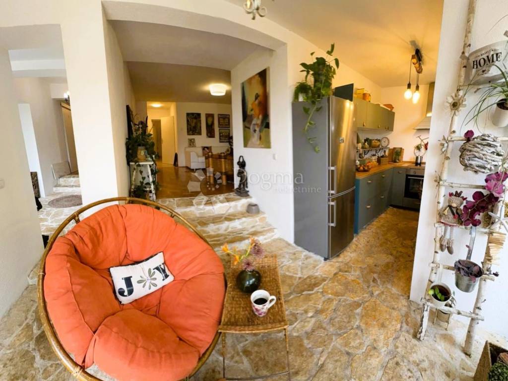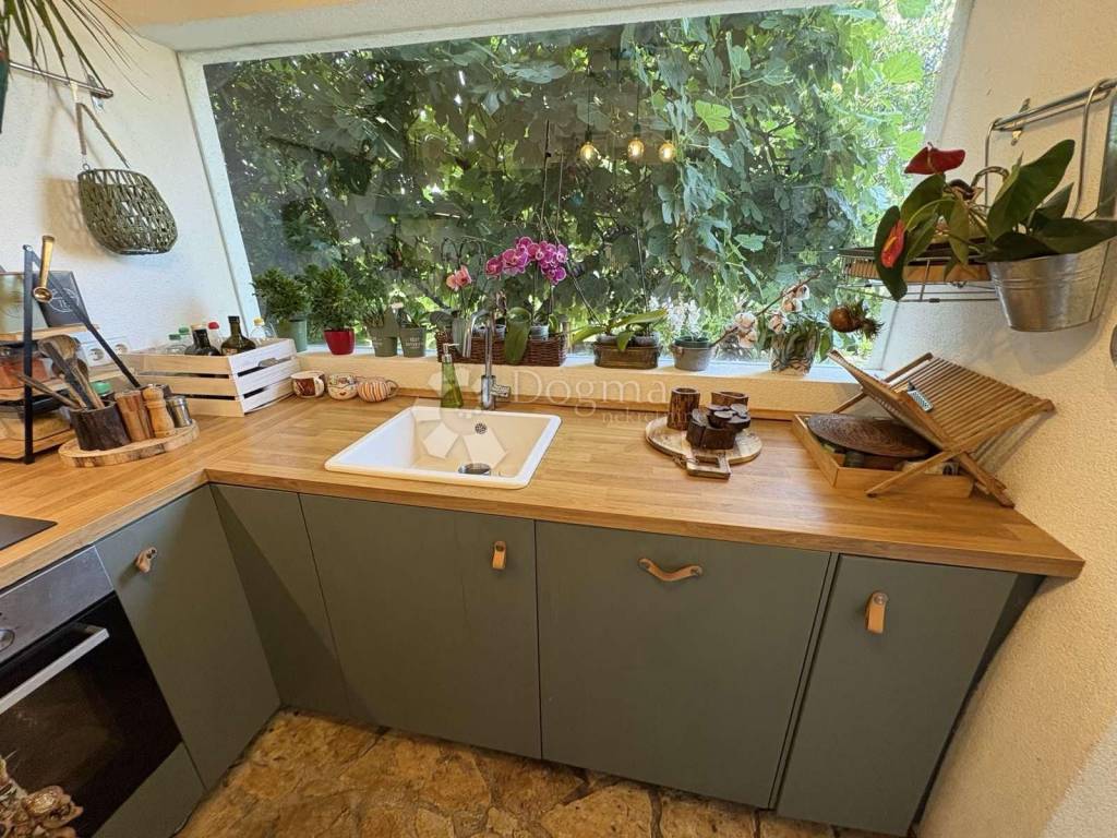 Panoramski otvoren pogled na more i zelenilo proteže se cijelom južnom stranom. Noću se vidi otvoreno nebo. U naravi stan ima blago rustikalan karakter koji mu daje poseban ugođaj.