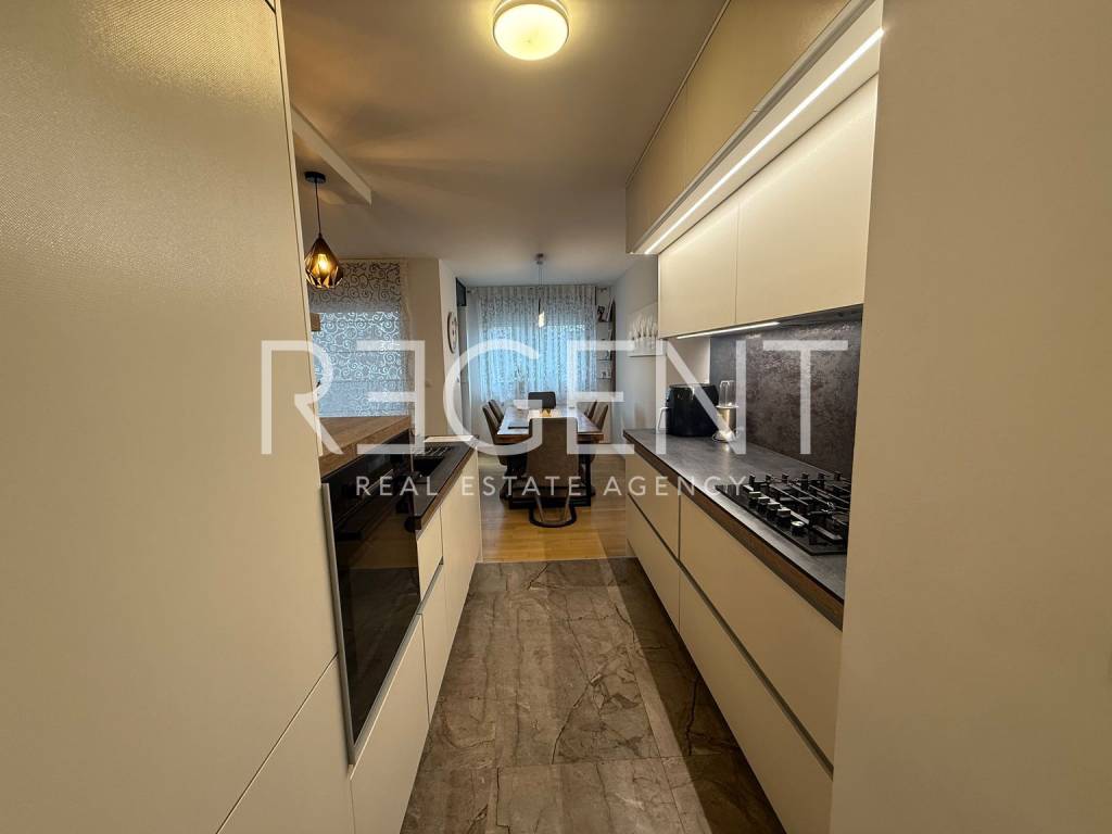 Na prodaju je prostran i u potpunosti opremljen penthouse smješten u širi centar Zagreba, u novijoj stambenoj zgradi s liftom. Stan se nalazi na četvrtom katu i riječ je o peterosobnom stanu koji se sastoji od dnevnog boravka, kuhinje, WC-a, kupaonice te četiri spavaće sobe, što ga čini idealnim za veće obitelji ili kupce koji traže komforan gradski prostor. Nekretnina je u cijelosti namještena i opremljena, a posljednja renovacija izvršena je prije tri godine, čime je osigurano moderno i uredno stanje bez dodatnih ulaganja. Lokacija u širem centru grada omogućuje brz i jednostavan pristup svim bitnim sadržajima, uključujući tramvajsku zonu, trgovine, škole i ostalu infrastrukturu, što ovu nekretninu čini izuzetno praktičnom za svakodnevni život. Za više informacija ili dogovor oko razgledavanja, slobodno nas kontaktirajte.