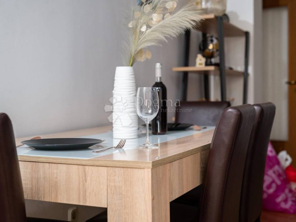 Stan je svijetao, prozračan i vrlo funkcionalnog rasporeda. Prodaje se namješten te je u dobrom stanju i odmah useljiv.