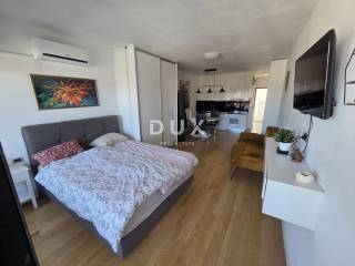 Stan je moderno opremljen novom bijelom tehnikom, uključujući perilicu posuđa, hladnjak, pećnicu s električnom pločom za kuhanje i napom, perilicu rublja, televizor te klima-uređaj. Sve je pažljivo odabrano kako bi se osigurala maksimalna udobnost i praktičnost svakodnevnog života.