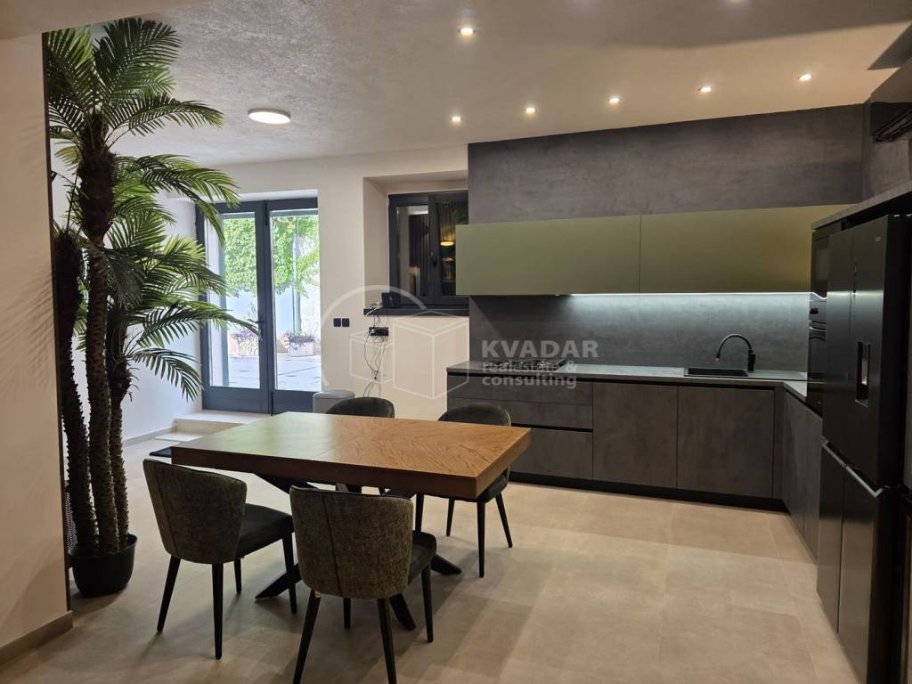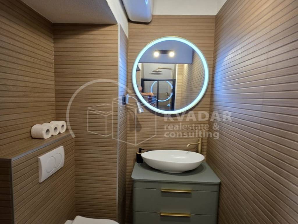 Adaptacija stana izvršena je vrlo temeljito 2025 godine. Provedene su sve kompletno nove instalacije: struja, voda, priključak za optički internet, klima uređaj, te podno grijanje. Ugrađeni su novi zatvori, sanitarije , novi kuhinjski i ostali namještaj rađen po mjeri, te je opremljen i svim potrebnim aparatima: perilica rublja i posuđa, hladnjak, pećnica, mikrovalna, TV.