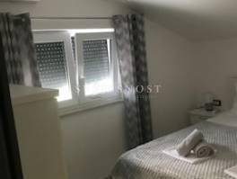 Visoko potkrovlje pripada stambenoj jedinici površine 74 m2 (2S+DB), sa dvije kupaone, te velikom terasom sa koje se pruža lijepi otvoreni pogled na more.