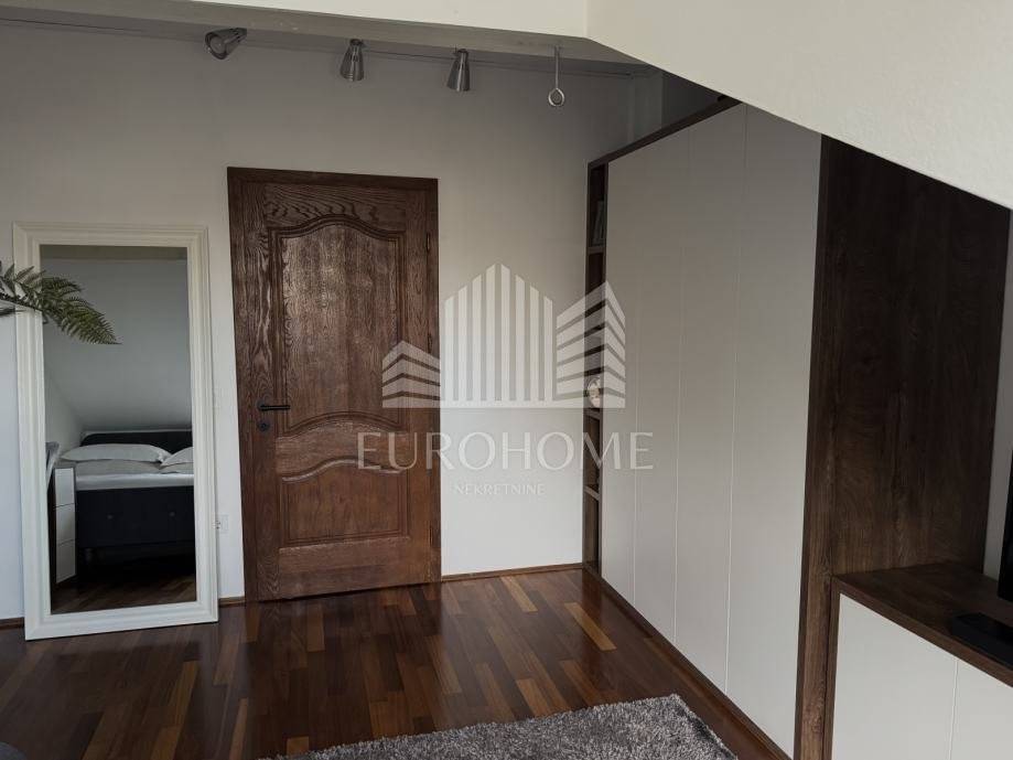 Stan se nalazi na 3 etaže (prizemlje, kat i potkrovlje) + podrum 55m2. Prizemlje se sastoji od prostranog dnevnog boravka sa kuhinjom i blagavaonicom te WC-a. Kat se sastoji od dvije spavaće sobe i kupaonice. Potkrovlje se sastoji od dvije spavaće sobe i kupaonice.