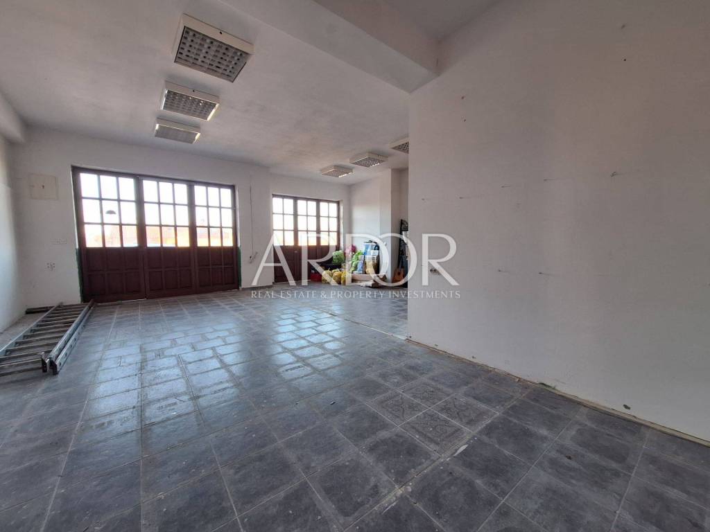 - velikog poslovnog prostora površine cca 80 m², koji je trenutno podijeljen zidom i vratima u dvije funkcionalne cjeline (mogućnost korištenja kao jedan ili dva prostora)