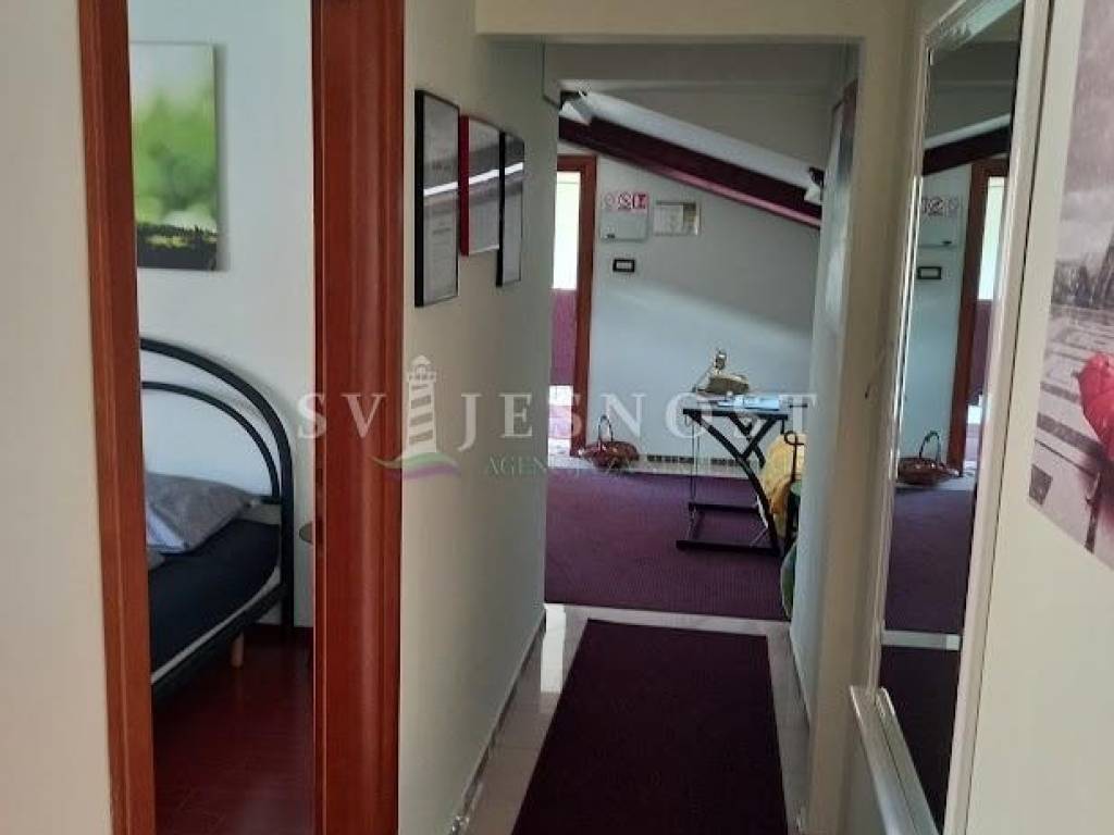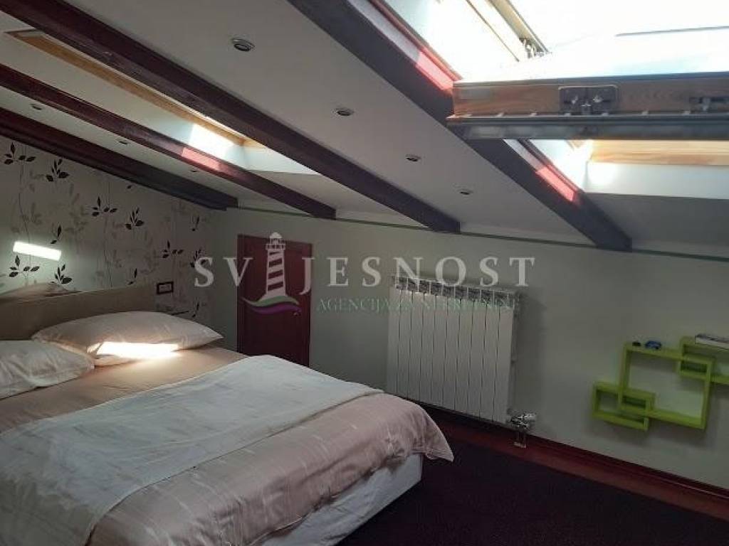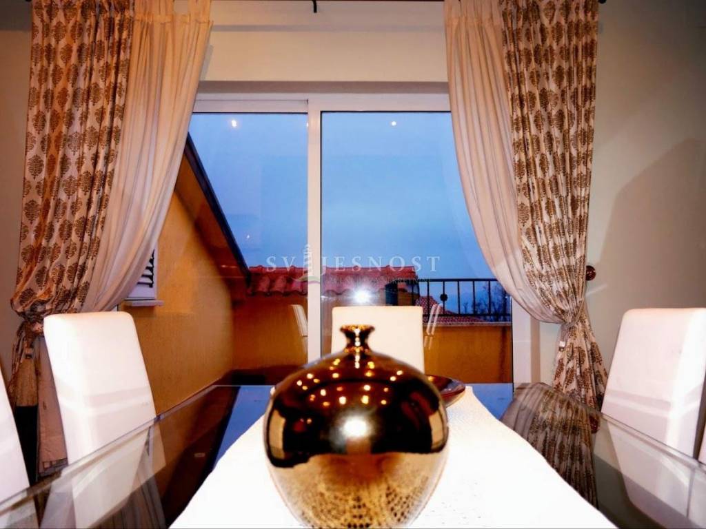 Jednu kariku našeg elitnog sastava možete nadopuniti i Vi kupnjom lijepog, moderno namještenog stana - etaže na drugom katu (visoko potkrovlje), urbane vile novije gradnje površine 80 m2 (2S+DB), sa terasom sa koje se pruža vrlo lijep i zanimljiv pogled na more i dio Kvarnera.