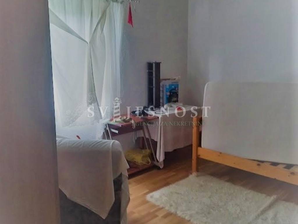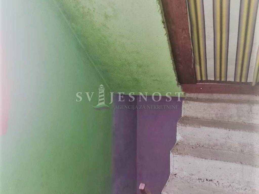 Sastavni dio zemljišta, tj centralni dio predstavlja samostojeća kuća koju čine prizemlje, kat i visoko potkrovlje koja je sagrađena 1977. godine i potrebno ju je osvježiti, dovršiti .