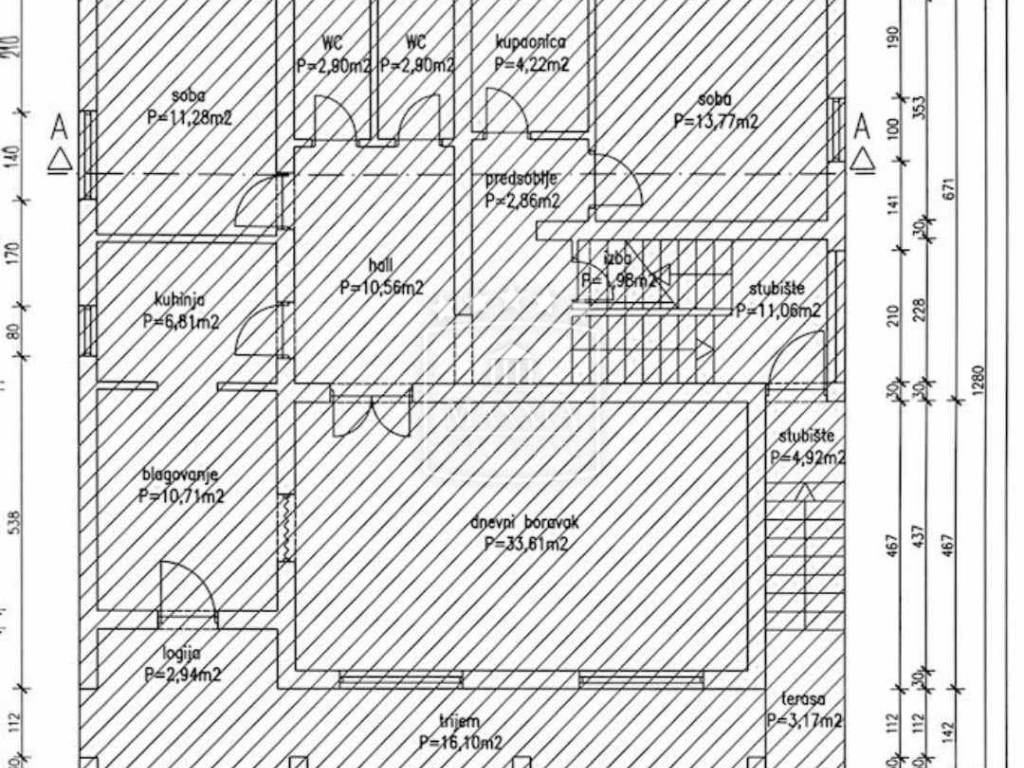 Visoki stropovi 3 m, kvalitetna gradnja i prostran raspored, garaža 27 m² + dodatna spremišta..