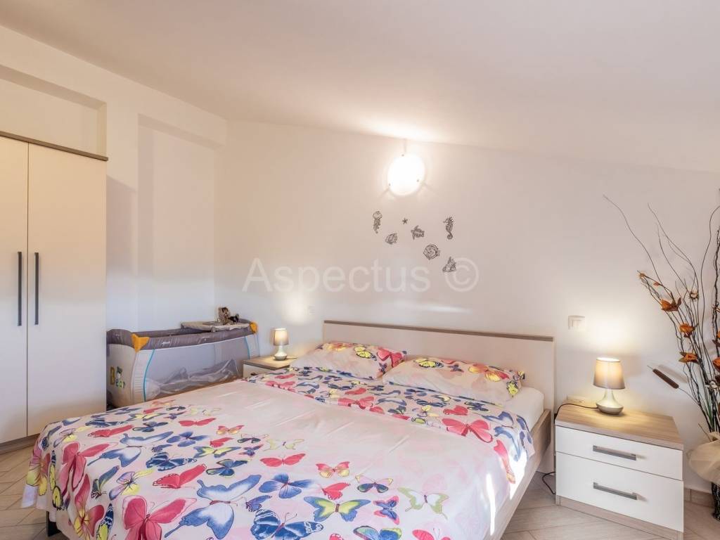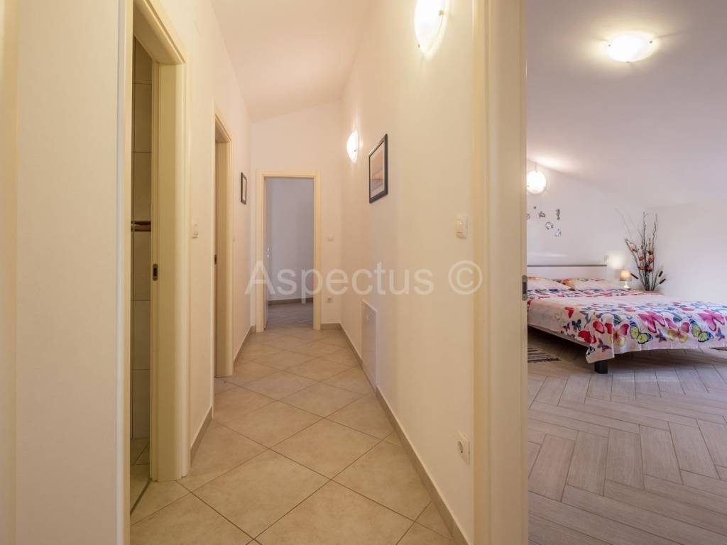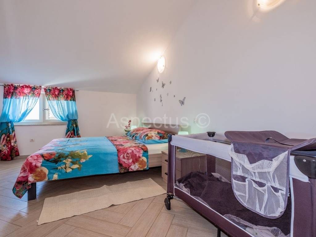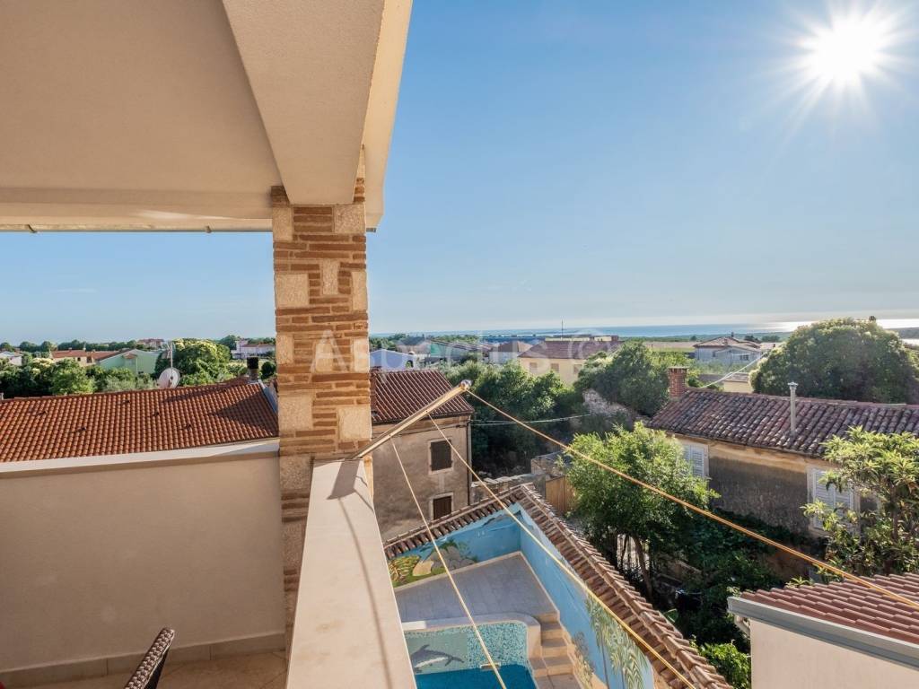 Prodajemo prekrasnu apartmansku kuću u Vodnjanu sa pogledom na more i otočje Brijune. Kuća se sastoji od prizemlja, prvog i drugog kata te prekrasne okućnice na kojoj se nalazi bazen površine 24 m2, strojarnica za bazen, šterna, kažun u kojemu je smješten vanjski toalet, spremište te vrlo lijepo uređen vinski podrum. U prizemlju kuće nalazi se prostrani ulaznik hodnik, konoba i krasan dvosoban stan sa izlazom na terasu i bazen. Na prvome katu nalaze se tri jednosobna apartmana sa vlastitim balkonom, dok se na drugome katu nalazi prostran i komforan dnevni boravak i kuhinja sa izlazom na terasu koja pruža neopisivo prekrasan pogled na more. Nadalje se na drugome katu nalazi kupaona i tri prostrane apartmanske sobe. Za potrebe grijanja i hlađenja kuća posjeduje klima uređaj, također kuća posjeduje pripremu prve faze za centralno grijanje na plin ili pelete. Kuća je idealna za iznajmljivanje turistima kao dugoročna investicija. Udaljenost od mora, plaža i čarobnog mjesta Fažane je 6 km. Udaljenost od autoputa je 1 km.