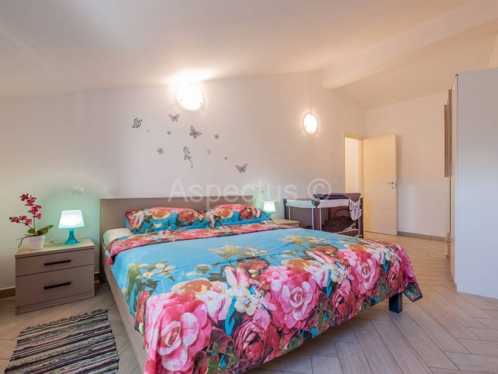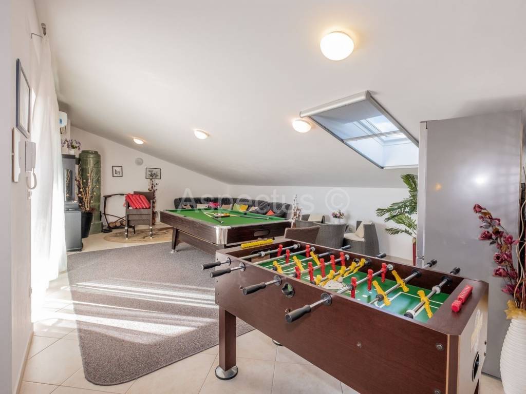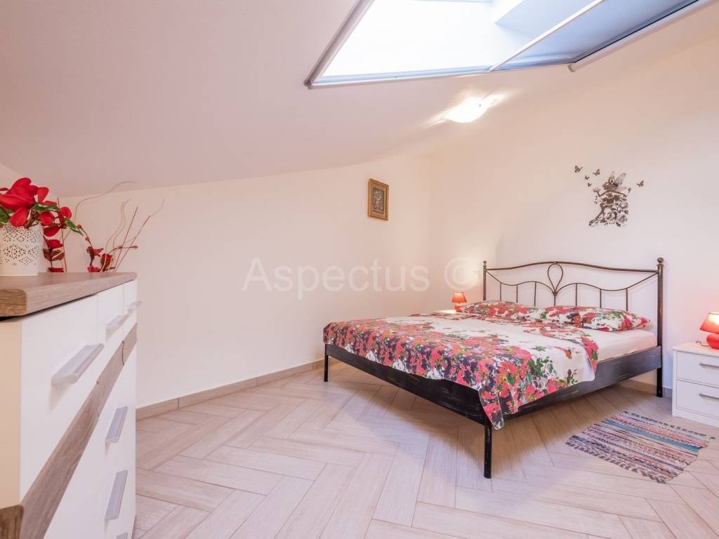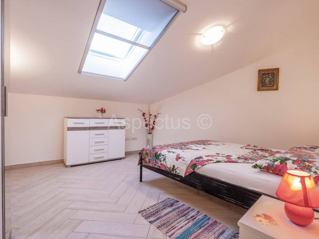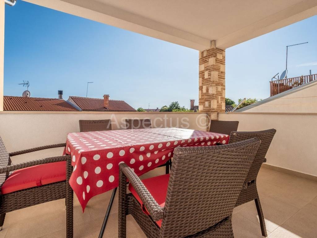 Prodajemo prekrasnu apartmansku kuću u Vodnjanu sa pogledom na more i otočje Brijune. Kuća se sastoji od prizemlja, prvog i drugog kata te prekrasne okućnice na kojoj se nalazi bazen površine 24 m2, strojarnica za bazen, šterna, kažun u kojemu je smješten vanjski toalet, spremište te vrlo lijepo uređen vinski podrum. U prizemlju kuće nalazi se prostrani ulaznik hodnik, konoba i krasan dvosoban stan sa izlazom na terasu i bazen. Na prvome katu nalaze se tri jednosobna apartmana sa vlastitim balkonom, dok se na drugome katu nalazi prostran i komforan dnevni boravak i kuhinja sa izlazom na terasu koja pruža neopisivo prekrasan pogled na more. Nadalje se na drugome katu nalazi kupaona i tri prostrane apartmanske sobe. Za potrebe grijanja i hlađenja kuća posjeduje klima uređaj, također kuća posjeduje pripremu prve faze za centralno grijanje na plin ili pelete. Kuća je idealna za iznajmljivanje turistima kao dugoročna investicija. Udaljenost od mora, plaža i čarobnog mjesta Fažane je 6 km. Udaljenost od autoputa je 1 km.