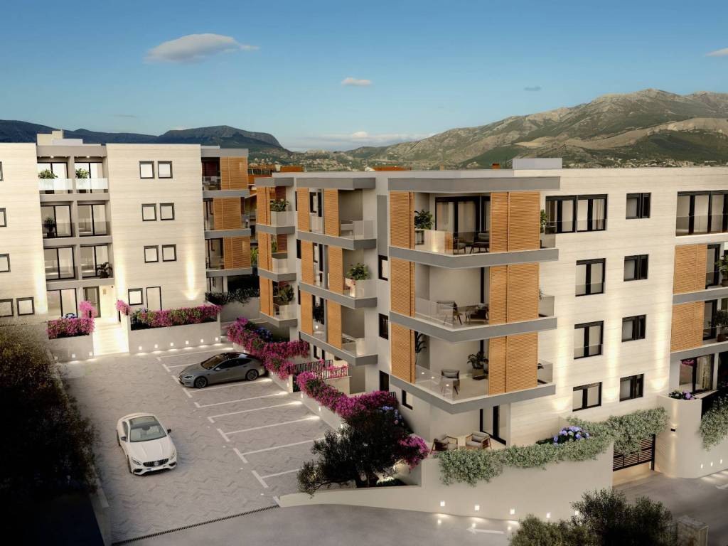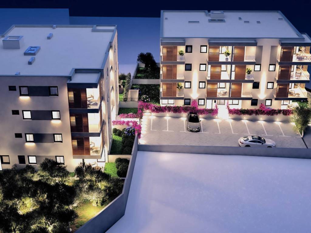 Split, Visoka, suvremeni projekt dvije arhitektonski usklađene zgrade, prizemlje i tri kata, smještene u mirnoj ulici, lokacija spaja privatnost i praktičnost: u blizini su škola, vrtić, trgovine i sportski sadržaji, te brzi pristup glavnim prometnicama, uzvišen položaj donosi i lijepi pogled. Eksterijer je oblikovan u kombinaciji travertin fasade, prozirnih staklenih ograda, aluminijskih kliznih roleta i otvora. Uređeni pristupi, hortikultura, ambijentalna led rasvjeta i vanjski video nadzor osiguravaju visoku razinu estetike i sigurnosti. Stanovi su projektirani s naglaskom na funkcionalne tlocrte, odlično prirodno osvjetljenje i izbor premium materijala.