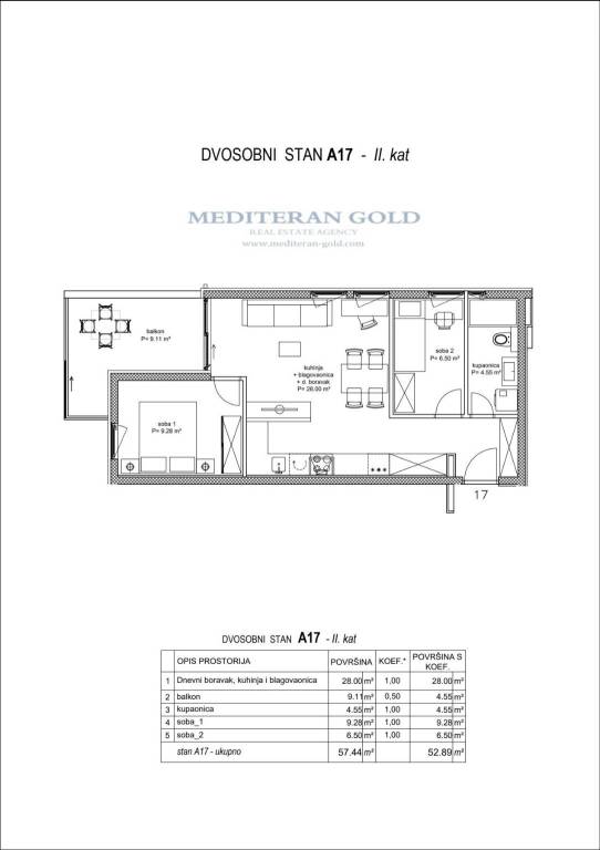 IZ PONUDE IZDVAJAMO: DVOSOBNI STAN: DRUGI KAT: A17, 52,89m2=326.000€