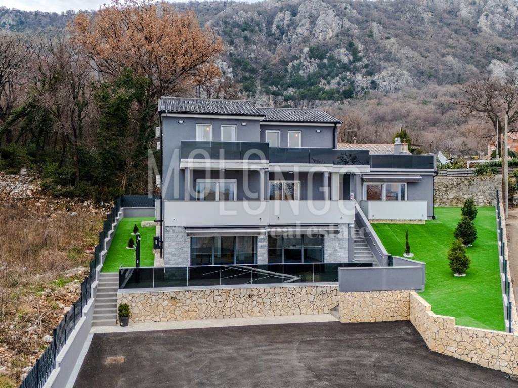 U mirnom i zelenilom okruženom dijelu Bribir, u zaleđu poznate Crikveničke rivijere, smještena je ova moderna i potpuno nova luksuzna vila izgrađena 2025. godine. Južne orijentacije, okupana suncem tijekom cijelog dana, nudi otvoren pogled na prirodu i more u daljini te potpunu privatnost i mir.