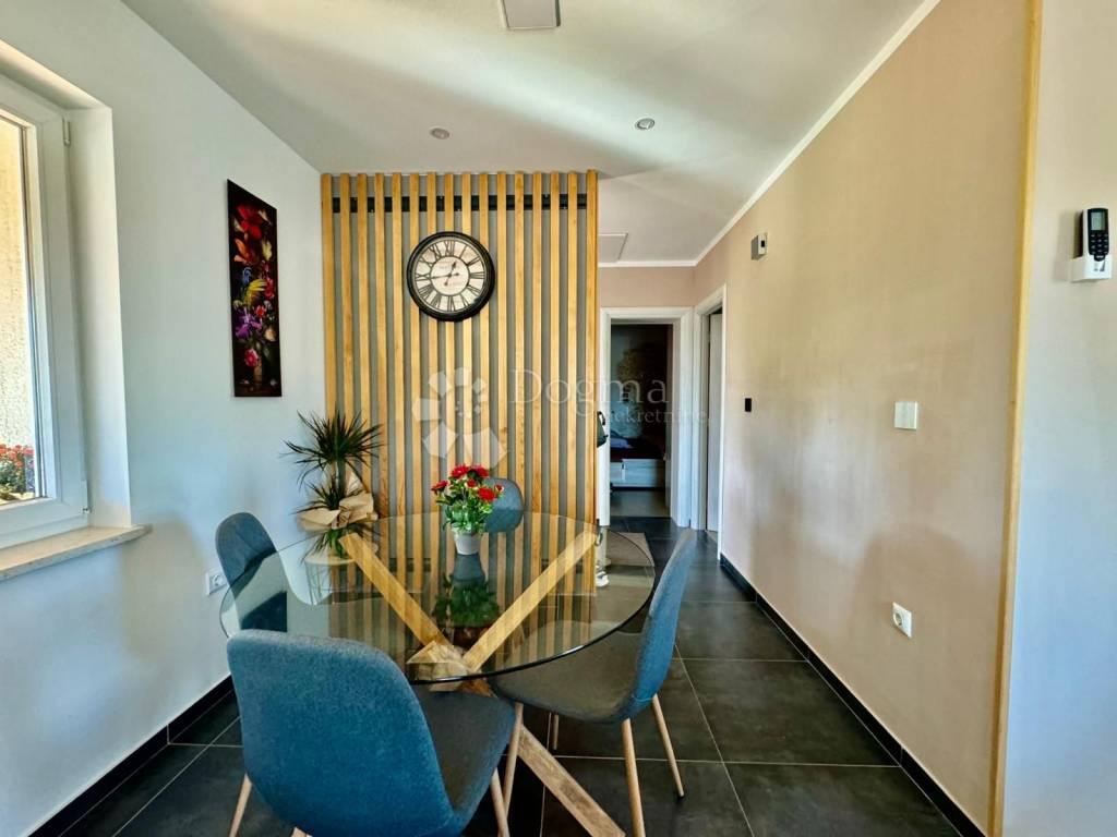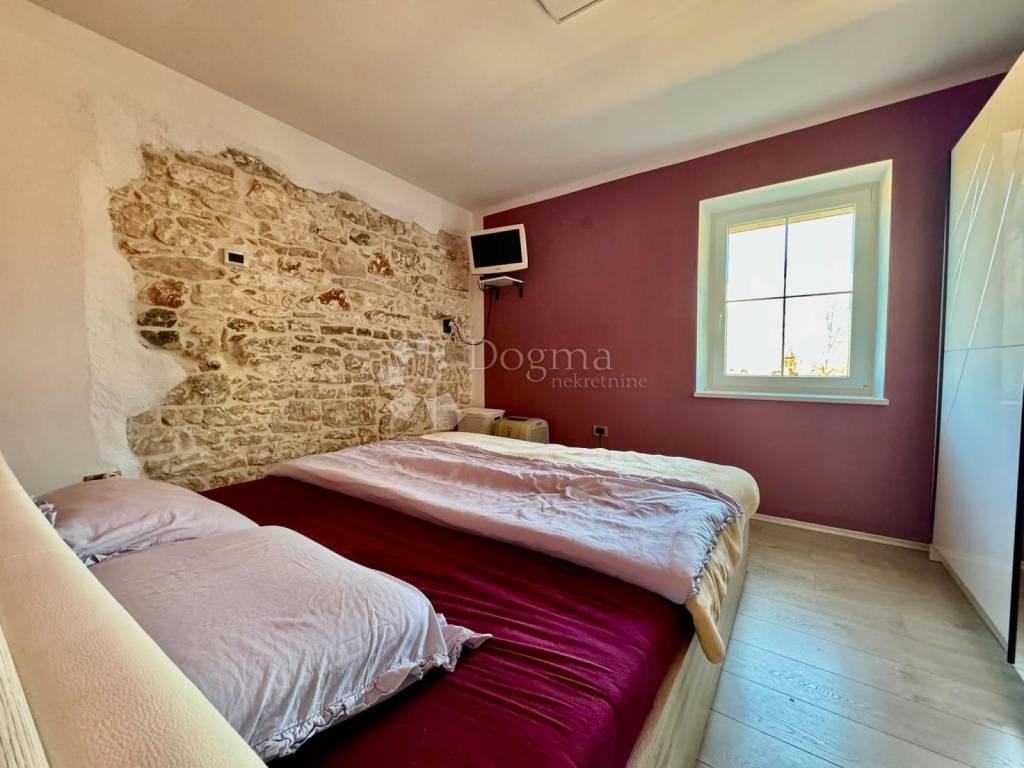 Na mirnoj lokaciji s predivnim pogledom na Učku nalazi se lijepa kamena prizemnica od 69 m2, okružena prostranom zelenom okućnicom. Ova šarmantna kuća sastoji se od dvije udobne spavaće sobe, dnevnog boravka, blagovaonice i kuhinje, te jedne kupaonice. Grijanje i hlađenje osiguravaju se klima uređajem, dok su podovi obloženi pločicama, a prozori su PVC stolarije. Kuća je adaptirana 2023. godine, s novim instalacijama za struju i vodu, te septičkom jamom.