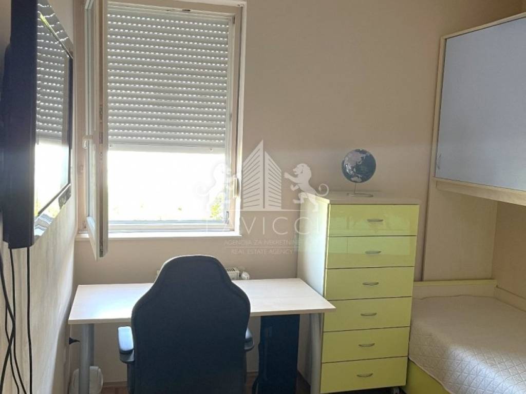 Lokacija stana jedna je od njegovih najvećih prednosti. Nalazi se u mirnoj i uređenoj četvrti koja pruža ugodan boravak i dobru povezanost sa svim potrebnim sadržajima. U neposrednoj blizini nalazi se škola udaljena svega stotinjak metara, vrtić, ambulanta, trgovine i trgovački centri. Za obitelji s djecom posebno je značajna blizina dječjih igrališta smještenih uz samu zgradu te kod obližnje škole.