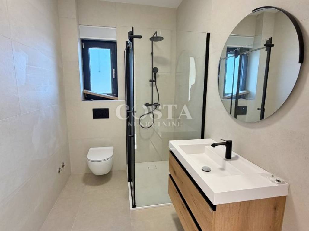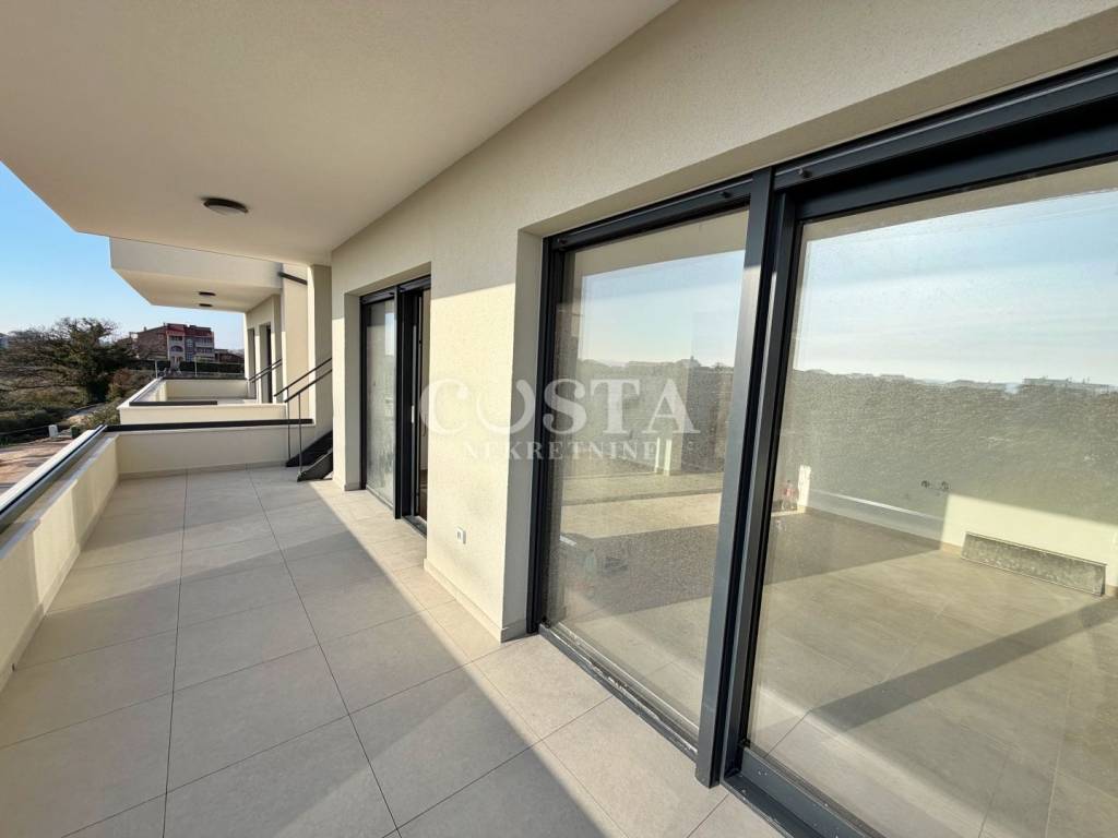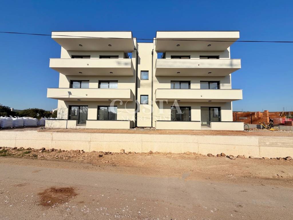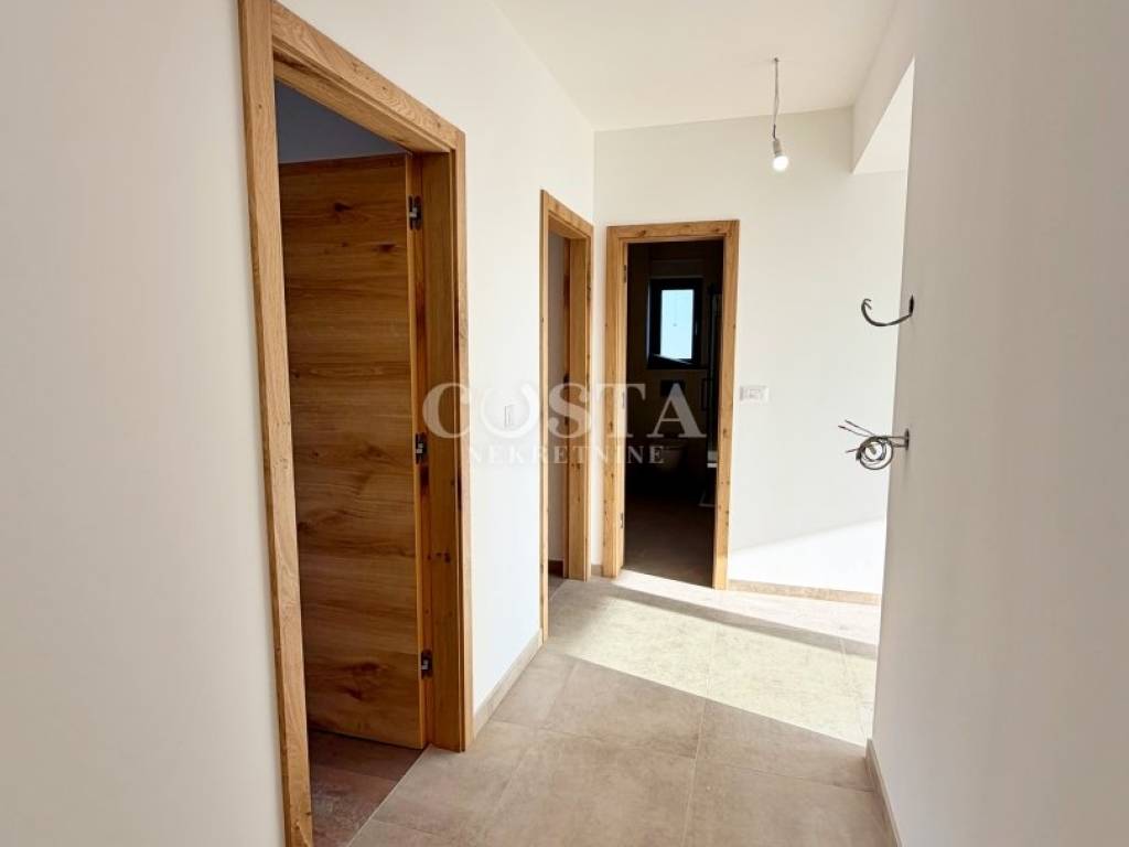Prodaje se penthouse u izgradnji u mjestu Sukošan pokraj Zadra. Stan površine 61,67 m2 nalazi se na drugom katu manje stambene zgrade od 6 jedinica. Sastoji se od prostranog dnevnog boravka, kuhinje i blagovaone, dvije spavaće sobe, kupaonice, hodnika i terase od dodatnih 16,56 m2. Stanu pripada i prostrana krovna terasa od 68,61 m2 te parkirno mjesto u dvorištu zgrade. Sveukupna prodajna površina stana zajedno sa svim pripacima iznosi 89.67 m2. Stan je klimatiziran, a provedeno je i podno grijanje.