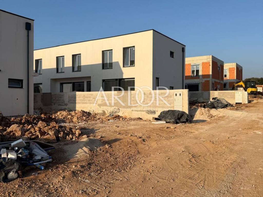 Nekretnina uključuje dva vanjska nenatkrivena parkirna mjesta ukupne površine 25 m². Ulazna vrata su visokokvalitetna, izrađena od višekomornih profila, dok je unutarnja stolarija modernog i kvalitetnog dizajna. Podne obloge čine keramičke pločice A klase velikog formata, koje dodatno naglašavaju suvremen izgled prostora.