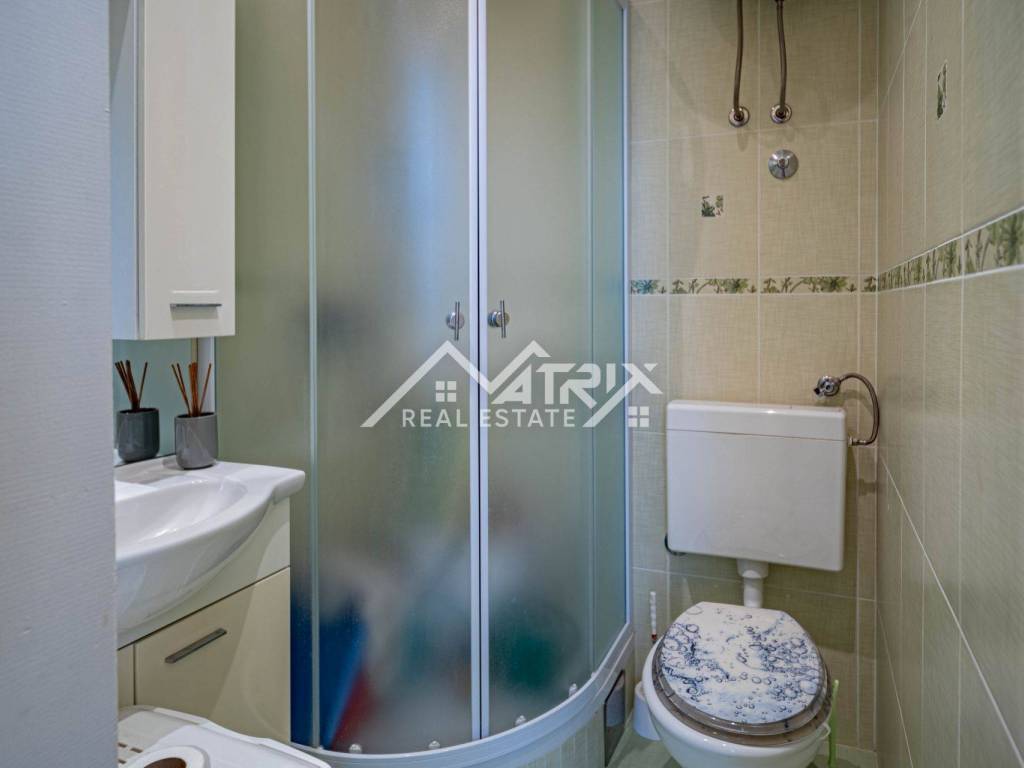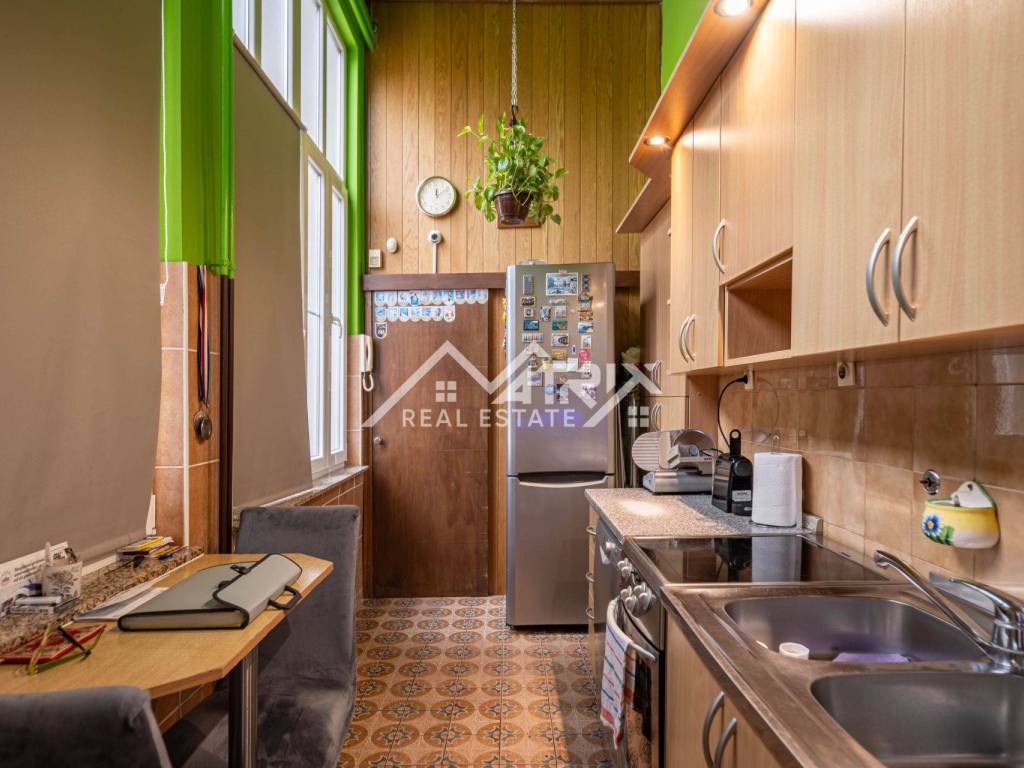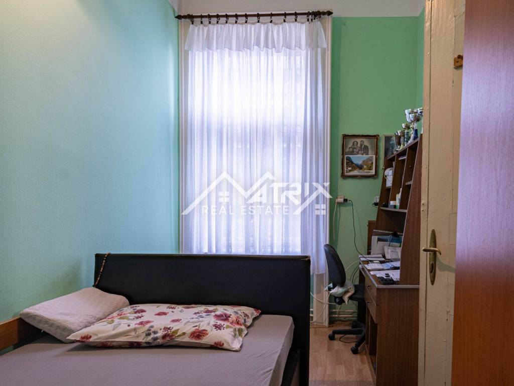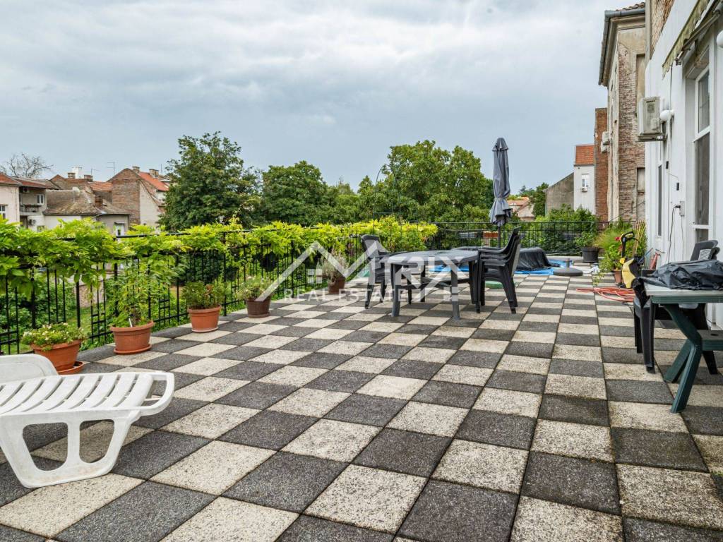 Glavna salonska soba od 28 m² odiše elegancijom nekadašnjih gradskih salona i izlazi na terasu s panoramskim pogledom na krošnje i krovove. Još tri tihe spavaće sobe (17 m², 12 m², 9 m²) pružaju mir, dok izdvojena kuhinja od 10 m² čuva izvorni raspored te priču o stoljetnoj tradiciji stanovanja. Kupaonica i nužnik odvojeni su radi komfora.