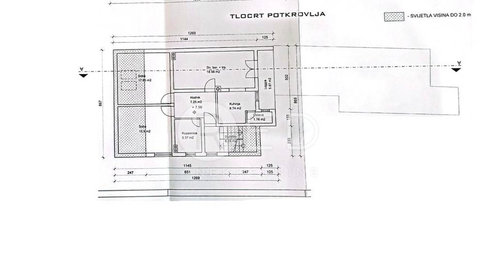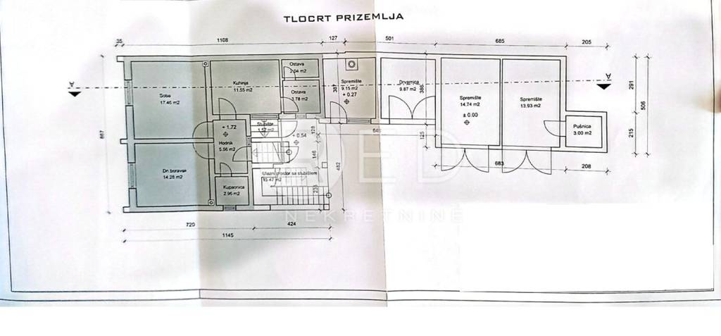-Prizemlje: Neto stambena površina 57,63 m² + dvorišne zgrade 47,69 m² + pušnica 3 m²