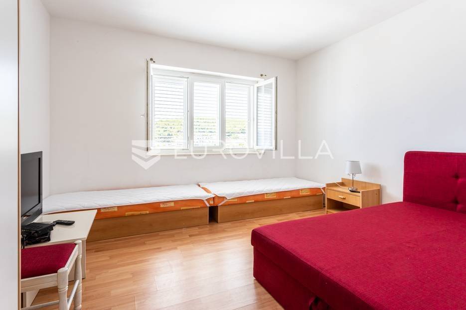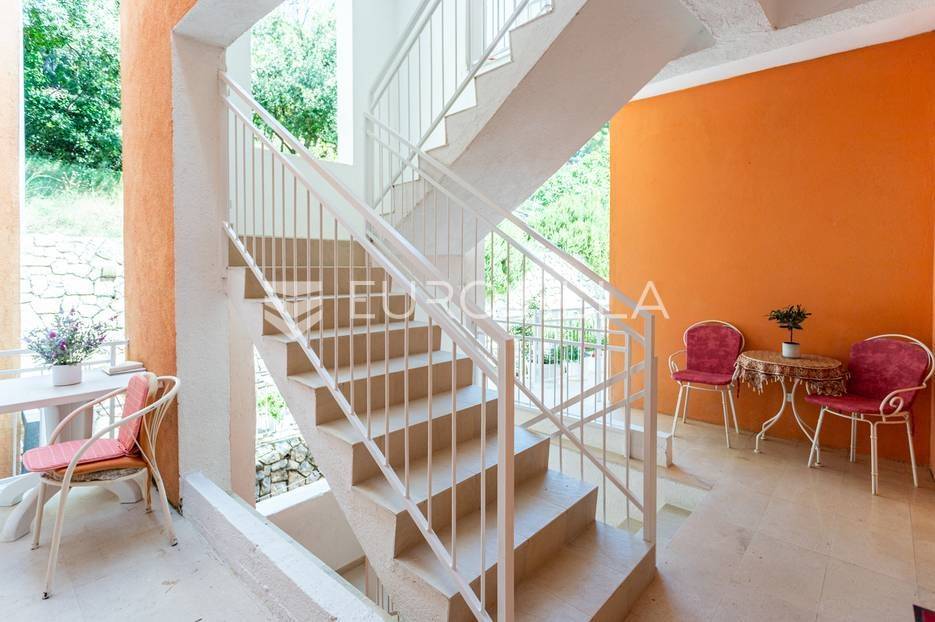Drvenik, iznimna nekretnina smještena prvi red do mora, s predivnim pogledom na more i otoke. Kvalitetna starogradnja, s visokim stropovima i prostranim sobama.Razvedena je u pet etaža (suteren, prizemlje i tri kata) ukupne površine 897,4 m2.Suteren - atraktivan poslovni prostor, no moguća je i prenamjena u garaže.Visoko prizemlje - jedna stambena jedinica na južnoj strani s tri spavaće sobe, tri kupaonice, kuhinjom i prostranom terasom; odvojen apartman s kuhinjom i kupaonicom; te ostava na sjevernoj strani.Prvi kat - jedna stambena jedinica s tri sobe s pripadajućim kupaonicama, dnevnim boravkom, blagovaonicom, kuhinjom i terasom te odvojeni apartman s kuhinjom i kupaonicom.Drugi kat - jedna stambena jedinica s dvije sobe i pripadajućim kupaonicama, dva odvojena apartmana te zasebno jedna soba s kupaonicom.Treći kat - veliki apartman koji ima tri sobe s kupaonicama i jedan manji odvojeni apartman.Kamena kultivirana okućnica, s puno prostora za druženje idealna za opuštanje u mediteranskom okruženju. S prednje strane objekta je sve usmjereno ka moru, i prilagođeno maksmialnom uživanju, dok je sa sjeverne strane objekta neiskorišteno građevisnko zemljište idealno za izgradnju dodatnog sadržaja (vanjske kuhinje, bazena, sauna…)Riječ o doista iznimnoj i rijetkoj nekretnini, s izvrsnim potencijalom za daljnji razvoj.Drvenik je mjesto s prekrasnim plažama, vrlo urbano, s popločanom rivom, prostranim ulicama, smješten u prekrasnoj i mirnoj uvali. Trajektnom linijom je direktno povezan sa najsunčanijim hrvatskim otokom Hvarom, koja vozi dvadeset minuta. Od Makarske je udaljen pola sata vožnje automobilom. Nalazi se na skoro pola puta od Splita do Dubrovnika, izvrsno prometno povezan s Međugorjem, Mostarom ili Sarajevom.Za sve dodatne informacije, stojimo vam na raspolaganju.... Više na eurovilla.hr, ID: 102215