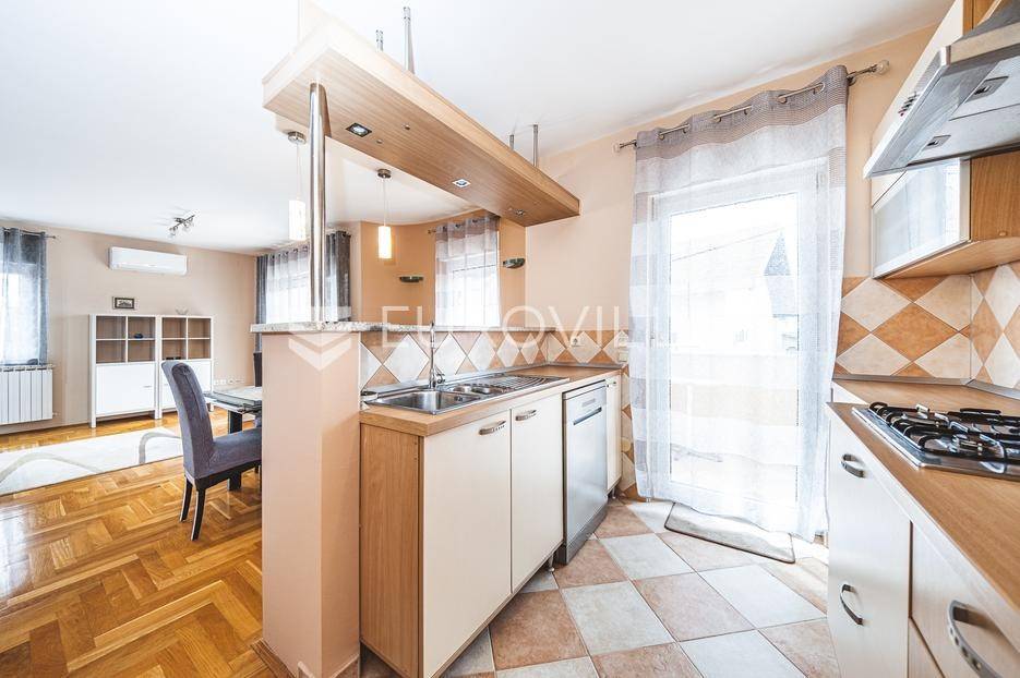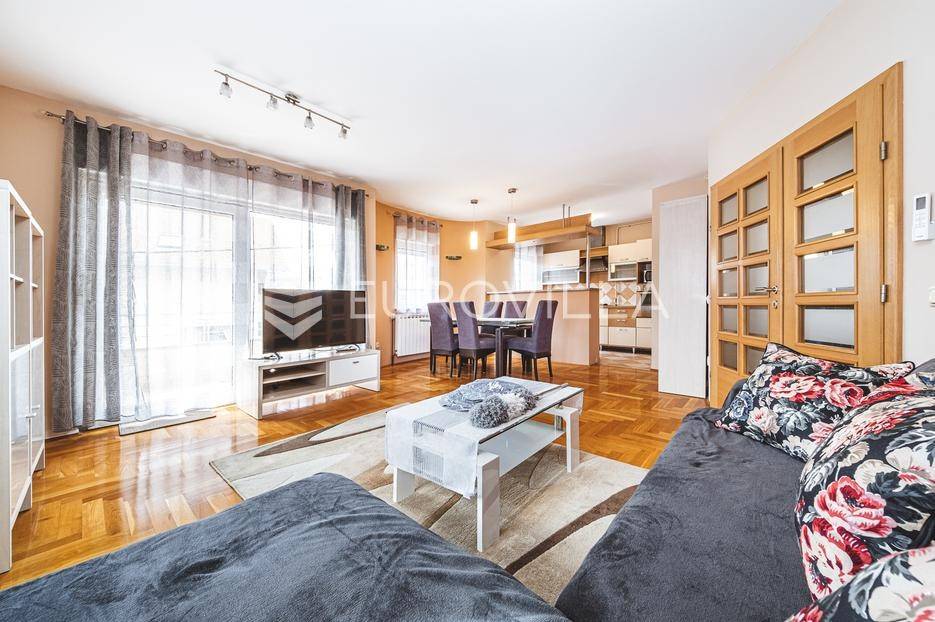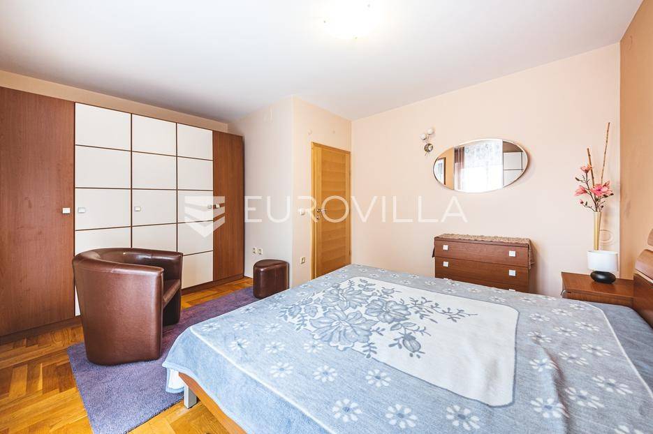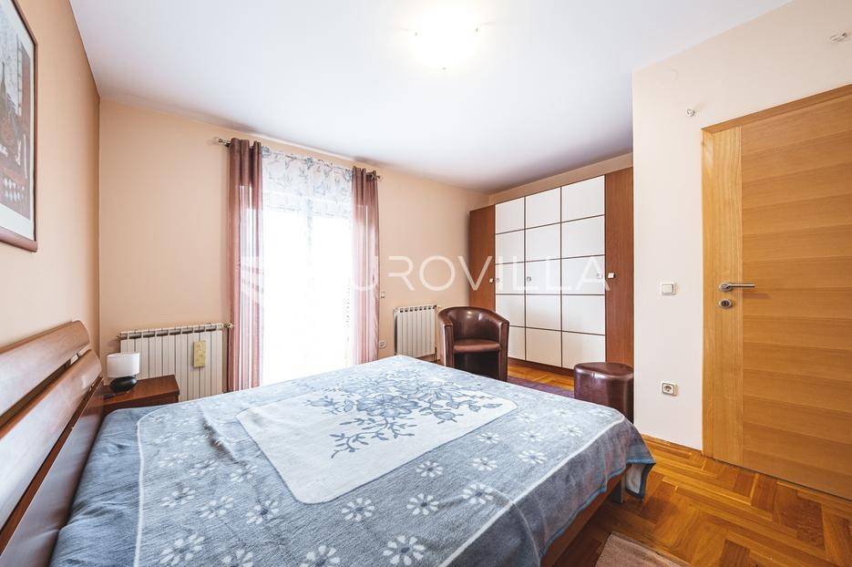 Ugodan, lijep i svijetao četverosoban stan, površine 110 m2, na prvom katu kvalitetno građene stambene zgrade bez lifta.Odlično iskorišten prostor u prvom dijelu stana sastoji se od ulaznog hodnika, gostinjskog toaleta, open space dnevnog boravka s kuhinjom i blagovaonicom te ostave. Drugom dijelu stana pripadaju 3 spavaće sobe koje su odvojene hodnikom, te imaju vlastitu kupaonicu s hidromasažnom kadom, što pruža dodatnu intimu.Svaka soba, uključujući prostrani dnevni boravak, ima izlaz na balkon, čime se savršeno spajaju unutrašnji prostor i vanjski ambijent; idealno za uživanje na otvorenom.Orijentacija sjever, jug i zapad, grijanje etažno plinsko, 2 klime. Potpuno opremljen sa svime što je potrebno za kvalitetan život (centralni usisavač, perilica za suđe, perilica za veš..itd), spreman za useljenje.Napomena* Mogućnost korištenja spremišta za bicikle.Stanu pripada 1 vanjsko parkirno mjesto ispred zgrade.Odlična lokacija- stan je smješten u mirnom, zelenom i ugodnom dijelu grada, neposrednoj blizini škole, bolnica, trgovina, vrtića, kafića, parkova i svega što je potrebno za kvalitetan život. Busne stanice ispred stana omogućuju jednostavan pristup svim dijelovima grada.Sve ostale informacije na upit.... Više na eurovilla.hr, ID: 107342