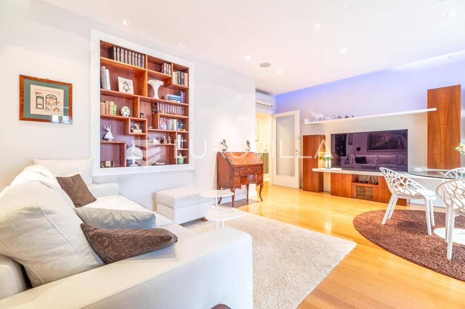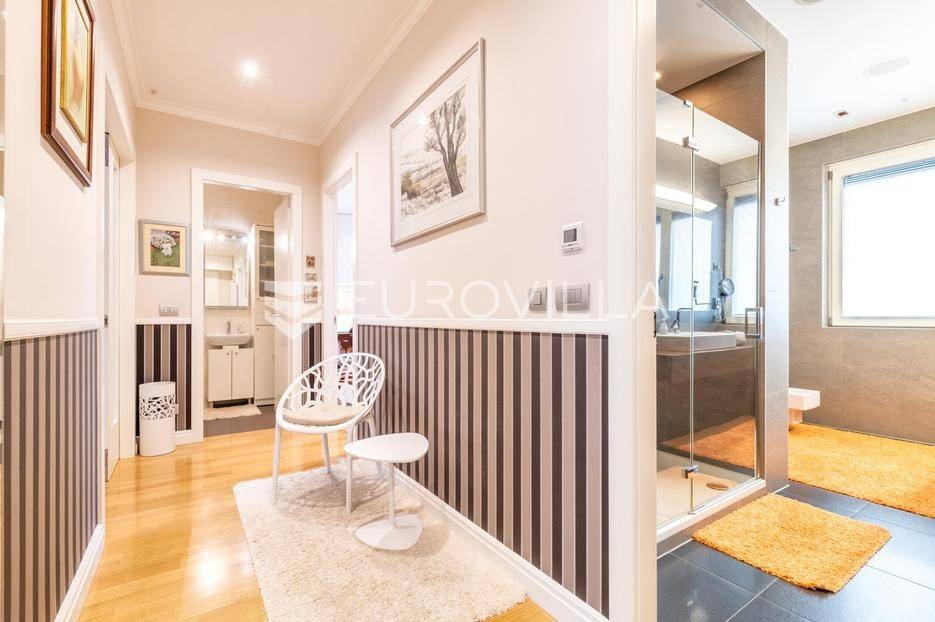 Centar, prekrasan trosoban stan na 3. katu ukupno obračunski neto površine 110 m2.Sastoji se od ulaznog hodnika sa ugrađenim ormarima, 2 prostrane spavaće sobe, kupaonice, toaleta za goste (vešeraj), garderobe, boravka s blagovaonicom, kuhinje i loggie. Orijentiran sjever, jug.Protuprovalna vrata, videoportafon, podno grijanje u kupaonici, stolarija alu drvo sa troslojnim staklom, električne rolete, klimatizirane sve prostorije. Visina stropa 290cm. Zgrada ima videonadzor, održavanje preko VMD servisa. Vrlo niski troškovi održavanja.Idealna lokacija, vrlo mirna, blizina svih bitnih sadržaja, javnog prijevoza. Samo 2km od Trga bana Jelačića ili 20 min pješice.Ostale informacije na upit.... Više na eurovilla.hr, ID: 111247