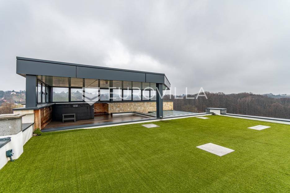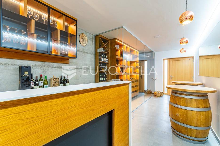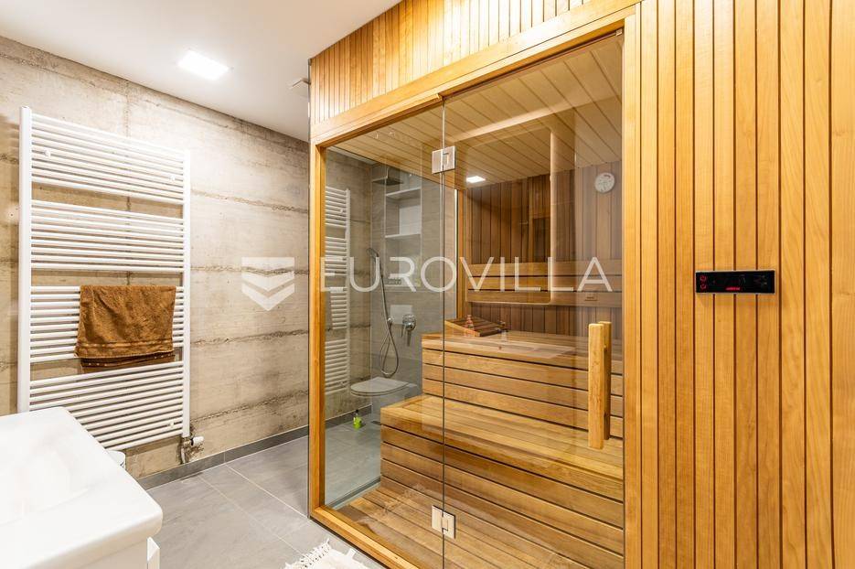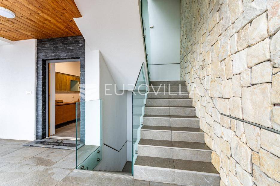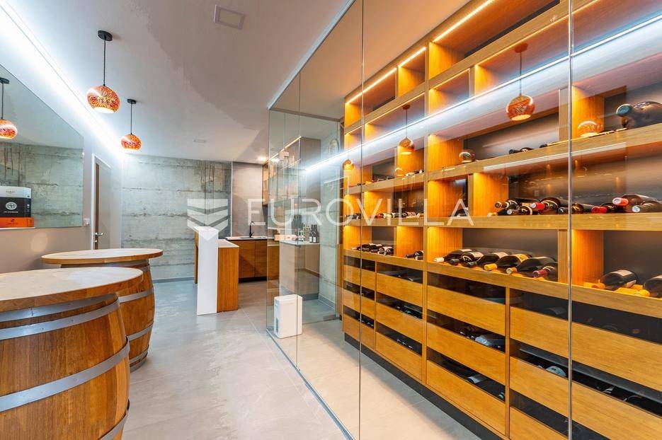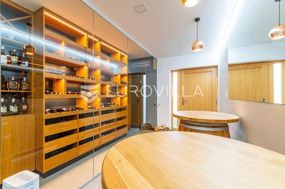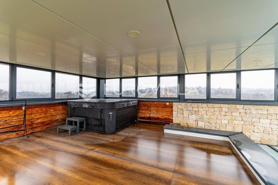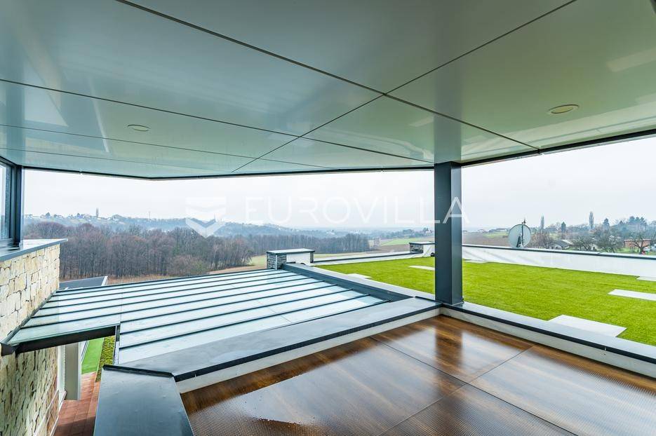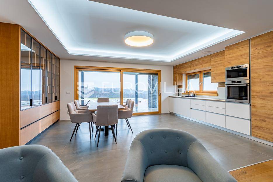 Gornji Mihaljevec, Vukanovec, luksuzna vila s panoramskim pogledom na zemljištu ukupne površine 12622 m², predstavlja savršen spoj elegancije, komfora i privatnosti.Sastoji se od tri etaže. U prizemlju se nalazi ulazni hodnik, open-space kuhinja s blagovaonicom i dnevnim boravkom, spavaća soba i kupaonica s wc-om. Iz kuhinje je izlaz na prostranu terasu. Dnevni boravak ima kamin.Prvi kat ima zaseban ulaz, a sastoji se od dvije spavaće sobe, kupaonice s wc-om, open-space kuhinje i blagovaonice te djelomično odijeljenog spavaćeg dijela. Iz kuhinje je izlaz na terasu.Podrum je u potpunosti uređen. Sastoji se od saune, vinoteke i garaže.Na krovu vile nalazi se prostrana terasa koja se sastoji od natkrivenog i nenatkrivenog dijela te je uređena umjetnom travom. Na natkrivenom dijelu nalazi se jacuzzi.U sklopu okućnice smješten je grijani bazen sa slanom vodom, dimenzija 10mX4mX1,65m. Bazen posjeduje uporabnu dozvolu.U produžetku vile je zaseban prostor površine 110 m2 u kojem se nalaze pečenjara, stan površine 30 m2 koji je predviđen za osoblje ili goste i garaže. Oko vile posađeno je 170 maruna.Vila je građena visokokvalitetnim materijalima i opremljena vrhunskim namještajem. Ima smart home sustav, podno grijanje, a svaka soba ima klima jedinicu.Smještena na osami, ova vila pruža potpunu privatnost i mir, uz prekrasan panoramski pogled na međimurske brežuljke. Lokacija je idealna za bijeg od užurbanog svakodnevnog života, ali i za ugodan obiteljski život tijekom cijele godine.U neposrednoj blizini nalaze se Terme Sveti Martin, kao i popularni Vidikovac Mađerkin breg. Dodatnu vrijednost lokaciji daje i blizina granice sa Slovenijom.Za dodatna pitanja i dogovor oko razgledavanja, stojimo Vam na raspolaganju.... Više na eurovilla.hr, ID: 116384