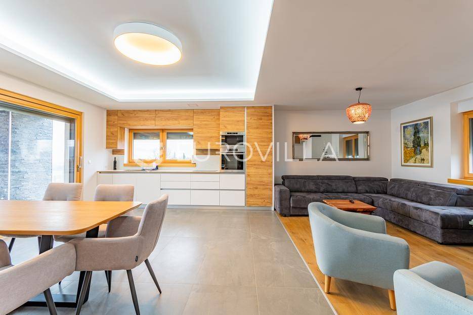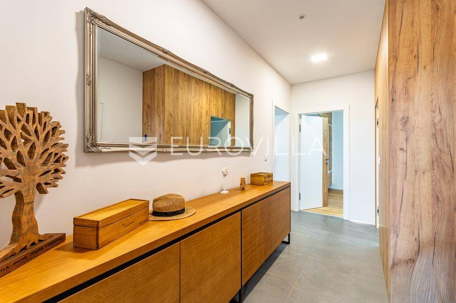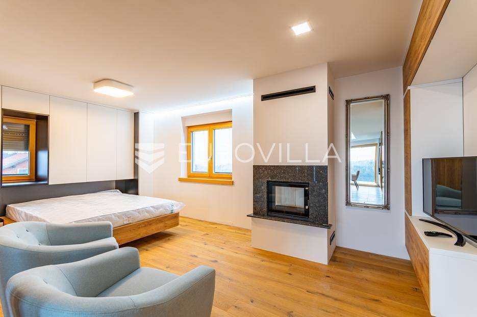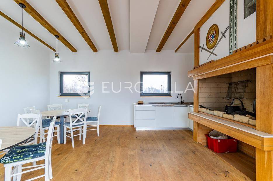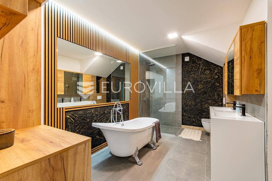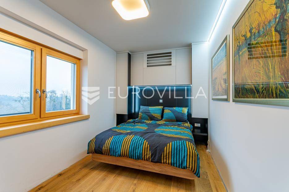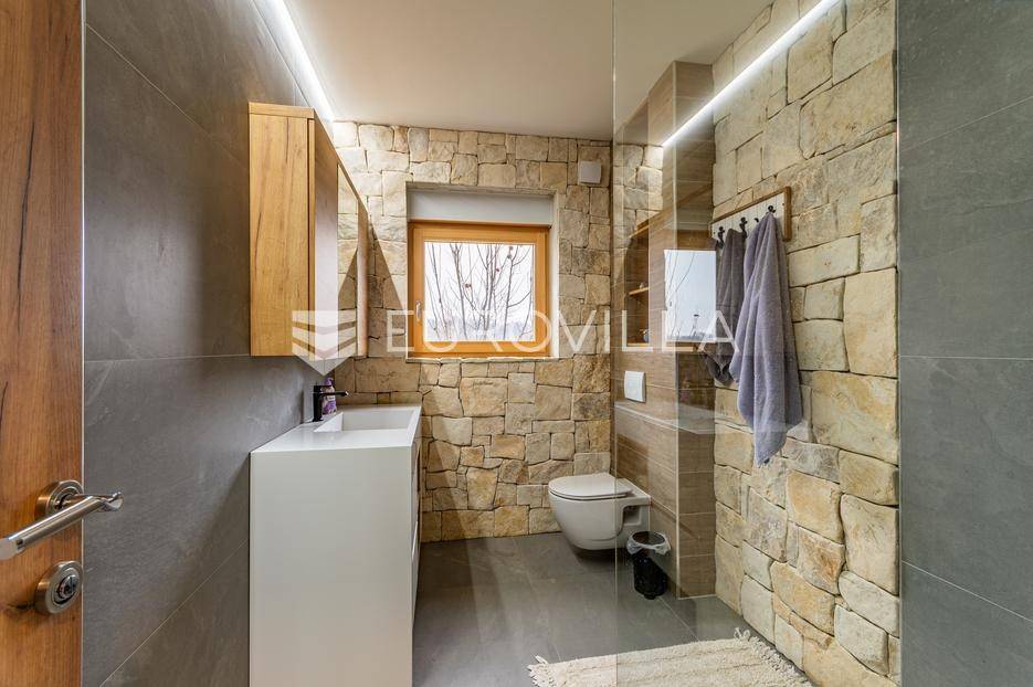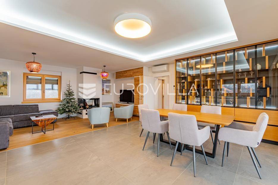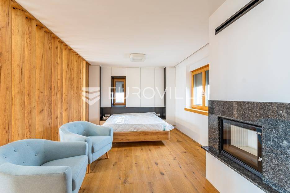 Gornji Mihaljevec, Vukanovec, luksuzna vila s panoramskim pogledom na zemljištu ukupne površine 12622 m², predstavlja savršen spoj elegancije, komfora i privatnosti.Sastoji se od tri etaže. U prizemlju se nalazi ulazni hodnik, open-space kuhinja s blagovaonicom i dnevnim boravkom, spavaća soba i kupaonica s wc-om. Iz kuhinje je izlaz na prostranu terasu. Dnevni boravak ima kamin.Prvi kat ima zaseban ulaz, a sastoji se od dvije spavaće sobe, kupaonice s wc-om, open-space kuhinje i blagovaonice te djelomično odijeljenog spavaćeg dijela. Iz kuhinje je izlaz na terasu.Podrum je u potpunosti uređen. Sastoji se od saune, vinoteke i garaže.Na krovu vile nalazi se prostrana terasa koja se sastoji od natkrivenog i nenatkrivenog dijela te je uređena umjetnom travom. Na natkrivenom dijelu nalazi se jacuzzi.U sklopu okućnice smješten je grijani bazen sa slanom vodom, dimenzija 10mX4mX1,65m. Bazen posjeduje uporabnu dozvolu.U produžetku vile je zaseban prostor površine 110 m2 u kojem se nalaze pečenjara, stan površine 30 m2 koji je predviđen za osoblje ili goste i garaže. Oko vile posađeno je 170 maruna.Vila je građena visokokvalitetnim materijalima i opremljena vrhunskim namještajem. Ima smart home sustav, podno grijanje, a svaka soba ima klima jedinicu.Smještena na osami, ova vila pruža potpunu privatnost i mir, uz prekrasan panoramski pogled na međimurske brežuljke. Lokacija je idealna za bijeg od užurbanog svakodnevnog života, ali i za ugodan obiteljski život tijekom cijele godine.U neposrednoj blizini nalaze se Terme Sveti Martin, kao i popularni Vidikovac Mađerkin breg. Dodatnu vrijednost lokaciji daje i blizina granice sa Slovenijom.Za dodatna pitanja i dogovor oko razgledavanja, stojimo Vam na raspolaganju.... Više na eurovilla.hr, ID: 116384