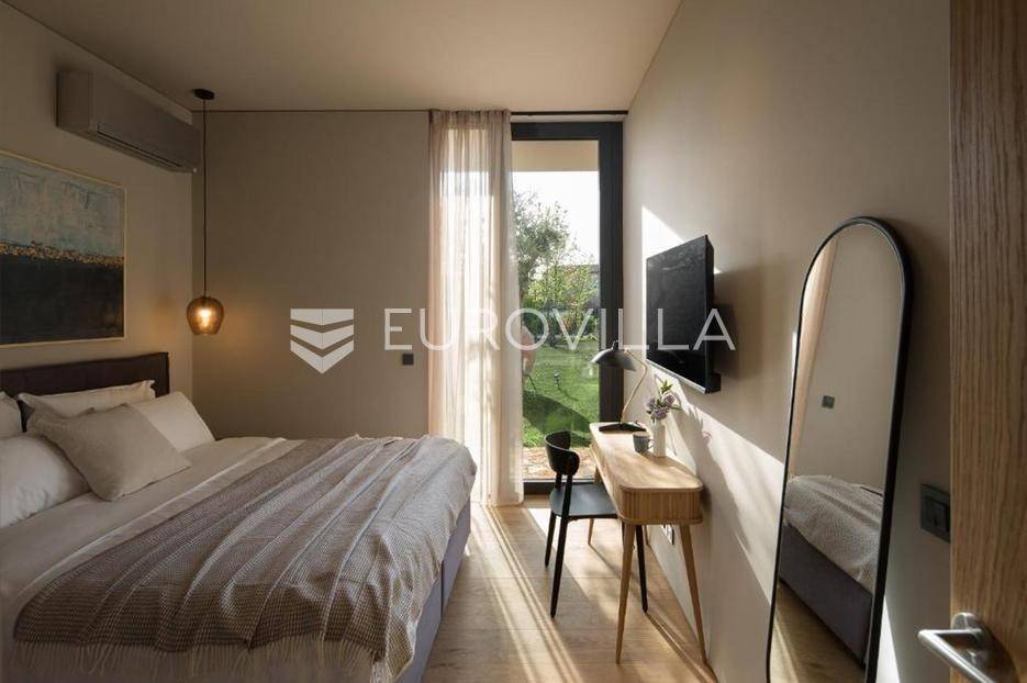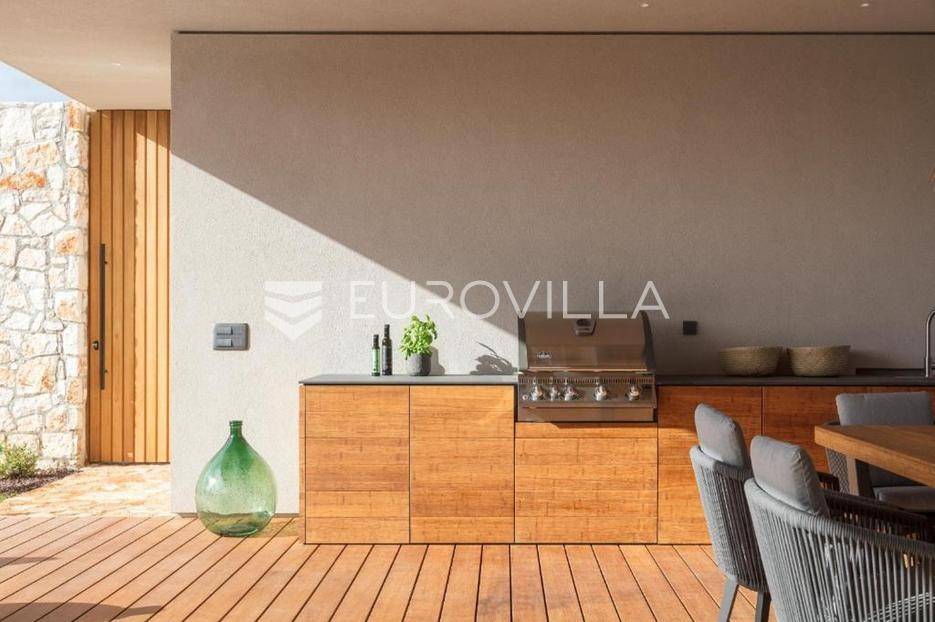 Predstavljamo vam elegantnu, modernu prizemnu vilu, smještenu u mirnom naselju u blizini grada Pule i Bala. Vilu ukupne stambene površine od veličine 140,38 m2 osim prekrasnog i pomno uređenog eksterijera krasi i prekrasno uređen interijer s pažljivo izabranim dizajnerskim namještajem, čime je cilj bio osigurati maksimalnu udobnost s naznakom na kvalitetu i osjećaj pravoga doma. Unutarnji se prostor vile tako dijeli na, privatni (spavaći) prostor i prostor namijenjen dnevnome životu.U prostoru za dnevni život u "open space" konceptu smjestio se prostrani dnevni boravak, blagovaona i moderno opremljena kuhinja, obogaćen sunčevim zrakama koje prodiru u prostorije vile kroz veće staklene stijenke. Kroz iste se staklene stijenke pruža i pogled prema uređenoj i održavanoj okućnicu s prostranim bazenom. Direktnom komunikacijom iz dnevnog boravka povezana je i veća vanjska natkrivena terasa od 50,17 m2 na kojoj se osim sjedećeg prostora sa stolom smjestila i opremljena ljetna kuhinja.Privatni i spavaći dio vile odvojen je hodnikom gdje su se smjestile dvije veće spavaće sobe, svaka od spavaćih soba posjeduje i vlastitu komunikaciju s okućnicom i bazenom. Jednako tako, u privatnom prostoru nalazi se i veća komotna kupaonica s "walk in" tušem i saunom u posebnom dijelu kupaonice.Odvojenim od vile se nalazi i pomoćni objekt koji se sastoji od tehničke sobe, a koji se koristi i kao spremište za sve potrepštine održavanja bazena i okućnice, jednako tako tu se nalazi i odvojeni vanjski toalet.Okućnica vile u potpunosti je ograđena i stopljena je s prirodom, a sa svojih 820m2 parcele predstavlja idealnu priliku za bijeg od ubrzanog gradskog stila života, dok noću nudi poseban ugođaj s pametno riješenim osvjetljenjem. Na okućnici se smjestio i veći bazen, kao i prostor za odmor i opuštanje. Tu se nalazi i natkriveni parking za 2 do 3 automobila, kao i dovoljno prostora za bezbrižnu igru vaših najmlađih članova obitelji i kućnih ljubimaca.Okružena netaknutom prirodom i zelenilom, ova vila pruža savršen ambijent za opuštanje, uz zvukove ptica i svih umirujućih tonova prirode.Iskoristite ovu priliku i postanite vlasnikom ove prvoklasne vile, za koju smo sigurni kako vas neće ostaviti ravnodušnima.DODATNE INFORMACIJE;* Vila je opremljena pametnim klima uređajima s mogućnosti hlađenja i grijanja prostora, a nalaze se u svim prostorijama vile.* Postavljeno je i podno grijanje na struju u cijeloj vili.* Vila se prodaje u potpunosti opremljena i sa svim dizajnerskim namještajem.* Vlasništvo je čisto, 1/1 vlasnik, bez tereta, nekretnina posjeduje svu dokumentaciju.Za sva dodatna pitanja, potrebne informacije ili želju za organizacijom termina razgleda stana slobodno nas kontaktirajte!... Više na eurovilla.hr, ID: 117086