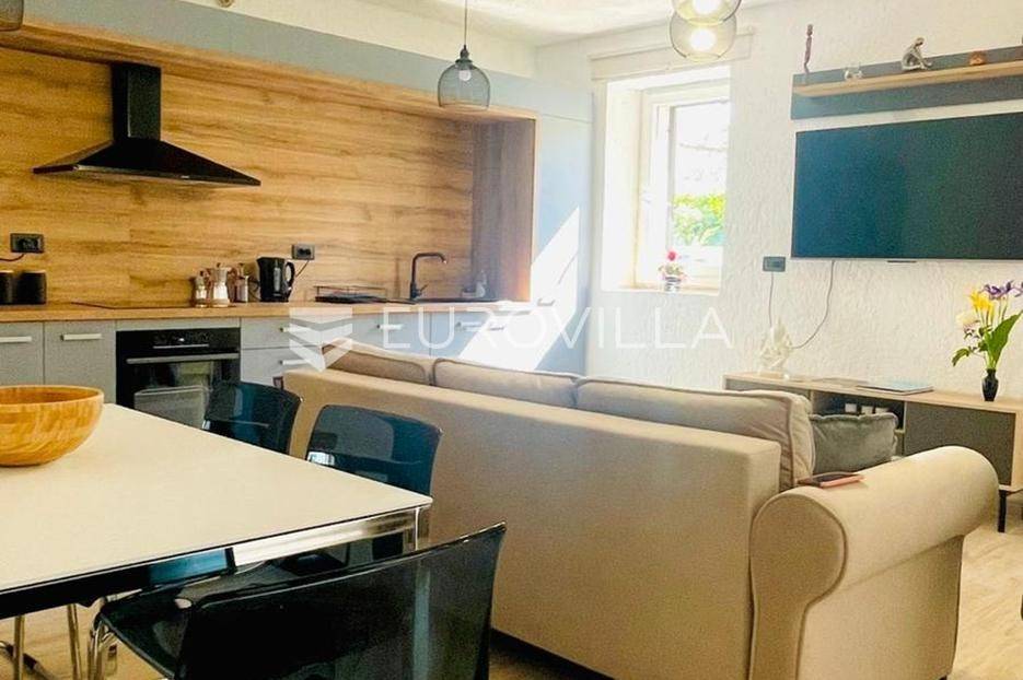 Istra, Kanfanar, PRODAJA - Moderan i kompletno opremljen stan s jednom spavaćom sobom 90 m², prizemljeNa prodaju je atraktivan, u potpunosti uređen stan površine 90 m², smješten u prizemlju kuće. Stan je preuređen prije 3 godine te se od tada uspješno turistički iznajmljuje, što ga čini idealnom prilikom kako za stanovanje, tako i za investiciju.Raspored prostora:Veliki ulazni hodnik koji povezuje cijeli stanOtvoreni koncept kuhinje, blagovaonice i dnevnog boravka - potpuno opremljena kuhinja modernog dizajnaDnevni boravak krasi veliki kamin kao centralni i estetski vrlo atraktivan element prostoraProstrana spavaća soba smještena nasuprot dnevnog boravkaU produžetku hodnika nalazi se pretprostor koji vodi u moderno uređenu kupaonicuU pretprostoru je smještena perilica rublja te ulaz u ostavu, koju je moguće preurediti u dodatnu prostoriju (radna soba, hobby prostor) ili vinski podrumDodatne značajke:Grijanje putem električnih radijatoraKvalitetni materijali, moderan dizajn i pažljivo birani detaljiStan se prodaje potpuno namješten i opremljenPogodno za turistički najam ili udobno cjelogodišnje stanovanjeStan odiše toplinom i funkcionalnošću, a kombinacija modernog uređenja i kamina daje mu poseban karakter.Kanafanar je udaljen 10-15 km od uređenih plaža i Rovinja te svega nekoliko minuta do autoputa.Za više informacija stojimo Vam na raspolaganju... Više na eurovilla.hr, ID: 150455