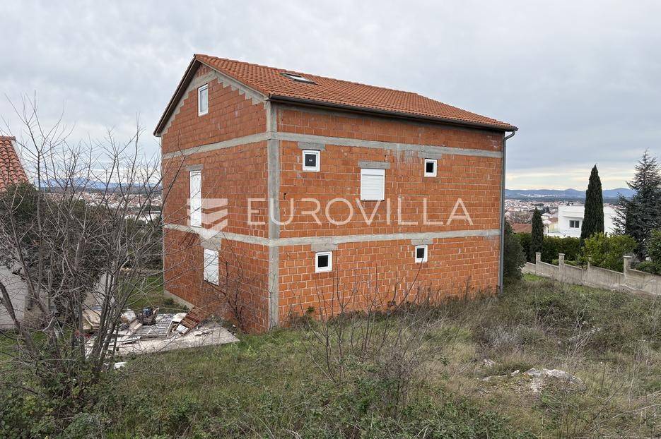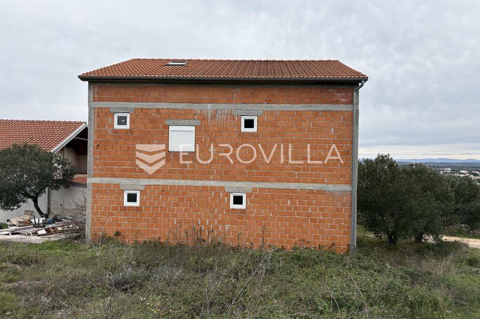 Vodice, kuća u izgradnji, površine 246,64 m², na parceli površine 423 m². Legalizirana je i posjeduje rješenje o izvedenom stanju.Kuća se sastoji od prizemlja u kojem se nalaze prostrani dnevni boravak s kuhinjom i blagovaonicom, dvije spavaće sobe te kupaonica. Unutarnjim stepenicama dolazi se do kata i potkrovlja. Te dvije etaže još nisu prezidane i kupcu ostavljaju mogućnost uređenja po želji.Kuća je na mirnoj lokaciji na rubu Vodica, te je od mora i centra udaljena 1200 metara.Sve ostale informacije na upit.... Više na eurovilla.hr, ID: 150869