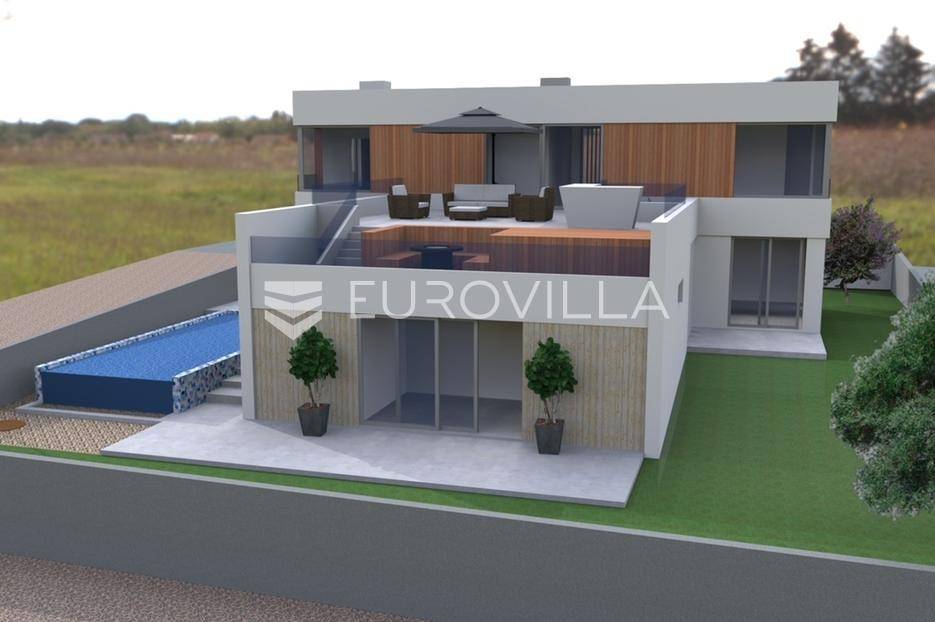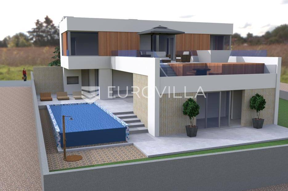 U mirnom i prestižnom dijelu Kožina, nedaleko od Zadra, smjestila se ova impresivna dizajnerska vila koja se prostire na zemljištu površine 639 m². Izgrađena je po najvišim standardima gradnje, spajajući tradicionalne mediteranske elemente i suvremeni luksuz u savršenu cjelinu.Vila se prostire na dvije etaže povezane unutarnjim i vanjskim stubištem, a svaki detalj pažljivo je osmišljen kako bi pružio maksimalnu udobnost, privatnost i eleganciju.Na prvoj etaži nalazi se prostrani ulazni prostor, spavaća soba s vlastitom kupaonicom, gostinjski toalet, te dnevni boravak, kuhinja i blagovaonica otvorenog koncepta s direktnim izlazom na terasu. Poseban kutak zauzima zona za opuštanje i zabavu s fitness prostorom, saunom i vanjskim bazenom, dok je terasa s kaminom idealna za druženja, roštiljanje ili opuštanje uz topli plamen tijekom večernjih sati.Na drugoj etaži smještene su tri prostrane spavaće sobe, svaka s vlastitom kupaonicom i staklenim pogledom na more. Sobe imaju izlaz na prekrasnu terasu s hidromasažnom kadom, firepitom, ležaljkama i vanjskim dnevnim boravkom - savršeno mjesto za uživanje u zalascima sunca i mediteranskoj atmosferi.Ova ekskluzivna vila predstavlja savršen spoj modernog dizajna, luksuza i udobnosti, te nudi idealno okruženje za život ili odmor u blizini jednog od najljepših dijelova zadarske obale.Za dodatne informacije stojimo vam na raspolaganju.... Više na eurovilla.hr, ID: 160507