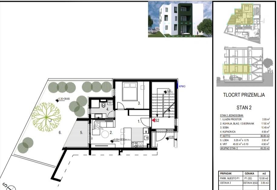 U mirnom i izuzetno traženom dijelu Solina - Mezanovci, smješten je ovaj moderan jednosoban stan u prizemlju, idealan za obiteljski život, ali i kao sigurna investicija. Projekt se ističe vrhunskom kvalitetom gradnje, suvremenom arhitekturom i pažljivo osmišljenim rasporedom prostora.Stan ukupne površine cca 52 m² (uključujući pripatke po koeficijentima) nudi funkcionalan i ugodan životni prostor, s otvorenim dnevnim dijelom koji objedinjuje kuhinju, blagovaonicu i boravak, jednu spavaću sobu te moderno uređenu kupaonicu, loggia i vrt.Poseban naglasak stavljen je na komfor i energetsku učinkovitost - u kupaonici je ugrađeno podno grijanje, dok je stan opremljen pripremama za klima-uređaj i komarnike, što omogućuje budućem vlasniku potpunu prilagodbu prema vlastitim željama.Stan dolazi s dva vlastita parkirna mjesta, te ostavom, što dodatno povećava njegovu vrijednost i praktičnost svakodnevnog života.Početak gradnje planiran je za veljaču 2026., dok se završetak radova i useljenje očekuju u srpnju 2027. godine. Lokacija nudi savršen balans između mirnog okruženja i blizine svih važnih sadržaja - škole, vrtića, trgovina i prometnih poveznica prema Splitu.Za sva dodatna pitanja stojimo Vam na raspolaganju.... Više na eurovilla.hr, ID: 182465