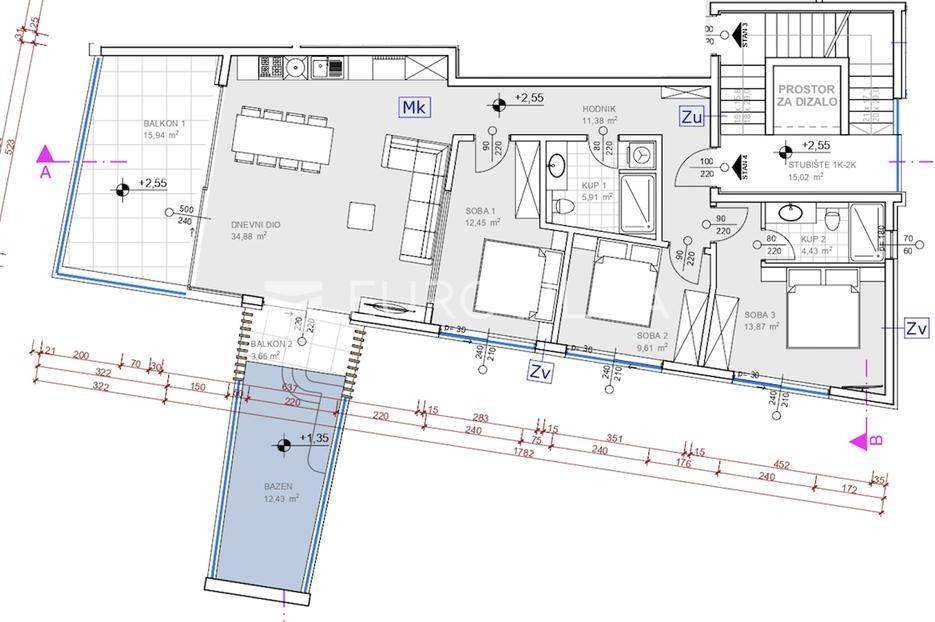 Grebaštica, luksuzan stan s bazenom i pogledom na more, neto korisne površine 114,76 m². Stan se nalazi u prizemlju moderne zgrade prvi red do mora. Pripada mu jedno parkirno mjesto u garaži, te ostava u podrumu. Površina zatvorenog prostora je 92,53 m², a površina terase je 15,94 m².Stan se sastoji od dnevnog boravka s kuhinjom i blagovaonicom, tri spavaće sobe od kojih jedna ima privatnu kupaonicu, jedne zasebne kupaonice, te prostrane terase s bazenom i pogledom na more. Svaka prostorija ima klima uređaj, te stan ima ugrađeno i podno grijanje.Zgrada se nalazi svega 40 metara od mora. Riječ je o luksuznom projektu koji se sastoji od dvije zgrade, s ukupno 9 stanova, gdje svaki stan ima privatan bazen.Za sve ostale informacije stojimo na raspolaganju.... Više na eurovilla.hr, ID: 184032