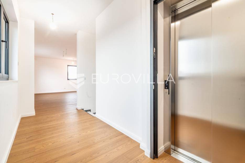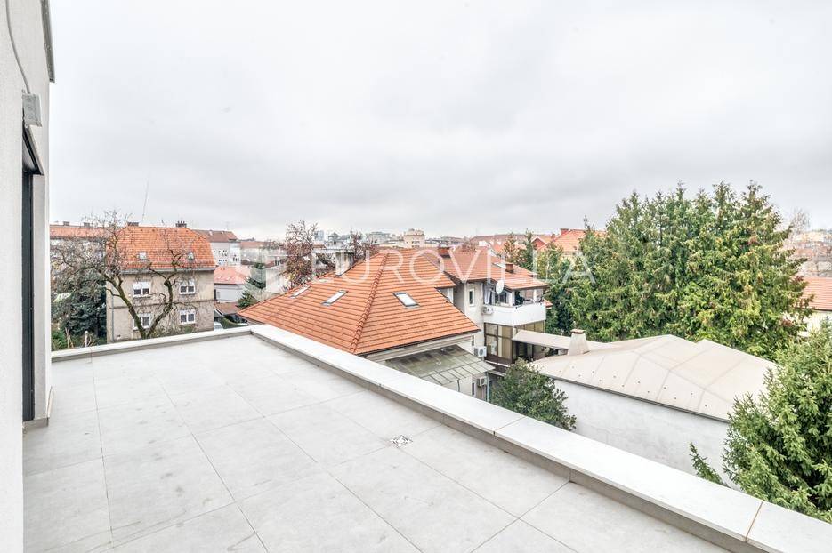 Na jednoj od najprepoznatljivijih gradskih adresa, u samom širem centru Zagreba, smješten je ovaj iznimno reprezentativan poslovno-stambeni prostor u penthouseu novije zgrade (2024.). Riječ je o prostoru koji spaja prestižnu lokaciju, suvremenu arhitekturu i potpunu privatnost - idealan izbor za one koji žele ostaviti snažan prvi dojam.Penthouse se nalazi na trećem katu poslovno-stambene zgrade, a poseban naglasak daje lift s direktnim pristupom u sam prostor, dostupan iz ulaza ili garaže putem VIP šifre.Ukupna površina prostora iznosi 188,87 m2, a dodatnu vrijednost čine:· lođa površine 6,73 m2· nenatkrivena terasa od 30,45 m2· spremište u podrumu (6,64 m2)· dva garažna parkirna mjesta u podzemnoj garaži (43 m2)U najam se preuzima kompletna površina od 188,87 m2.Tlocrt je pažljivo osmišljen kako bi zadovoljio različite poslovne namjene. Središnji dio čini prostrana otvorena prostorija površine 40,64 m2, zamišljena kao konferencijska sala, prostor za sastanke ili elegantna čekaonica. Povezana je s kuhinjom i blagovaonicom te se nastavlja na lođu i veliku terasu s impresivnim pogledom prema Zagrebačkoj katedrali i Medvednici. U ulaznom dijelu moguće je, prema potrebi, postaviti info pult.Prostor dodatno obuhvaća:· garderobu (8,61 m2)· gospodarstvo (3,48 m2)· predsoblje (8,01 m2)· dva ureda (13,32 m2 i 9,55 m2) orijentirana prema mirnom dvorištu· dvije kupaonice (4,76 m2 i 8,79 m2)Penthouse ima četverostranu orijentaciju i jedini je prostor na toj etaži, što osigurava potpuni mir i privatnost.Svi prostori okrenuti prema prometnoj ulici projektirani su s naglaskom na obilje prirodnog svjetla, uz vrhunsku zvučnu i vizualnu izolaciju. Trostruka IZO stakla i električne žaluzine u potpunosti neutraliziraju vanjsku buku i osiguravaju diskreciju.Interijer je opremljen materijalima najviše klase:· gotovi hrastov parket u uredima· vrhunska keramika u kupaonicama, lođi i terasi· kupaonice opremljene proizvodima renomiranih proizvođača (walk-in tuševi, kade, sanitarije)Cijeli prostor ima podno grijanje, dodatne radijatore u kupaonicama te klimatizacijske uređaje u svim prostorijama, s pametnim funkcijama koje sprječavaju izravno puhanje. Ulazna vrata su protuprovalna i protupožarna.Postoji mogućnost dogovora oko dodatnog opremanja - rasvjete, izrade čajne kuhinje, info pulta ili ugradbenih kupaonskih ormarića.Podzemnoj garaži pristupa se auto-dizalom, a etaža obuhvaća parkirna mjesta, spremišta te tehničke prostorije zgrade.Zahvaljujući iznimnoj mikrolokaciji, prostor je idealan za:· polikliniku ili medicinsku ordinaciju· odvjetnički ili javnobilježnički ured· predstavništvo strane tvrtke· druge mirne i reprezentativne djelatnostiJavni prijevoz (tramvaj i autobus) nalazi se u neposrednoj blizini, a u okolici su dostupne i javne garaže. Glavni željeznički i autobusni kolodvor udaljeni su svega nekoliko tramvajskih stanica. U pješačkoj zoni nalaze se tržnica Kvatrić, banke, pošta, ljekarne, zdravstvene ustanove, trgovine, restorani i brojni sadržaji potrebni za svakodnevno poslovanje.Za sva pitanja Vam stojimo na raspolaganju.... Više na eurovilla.hr, ID: 190520
