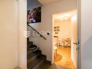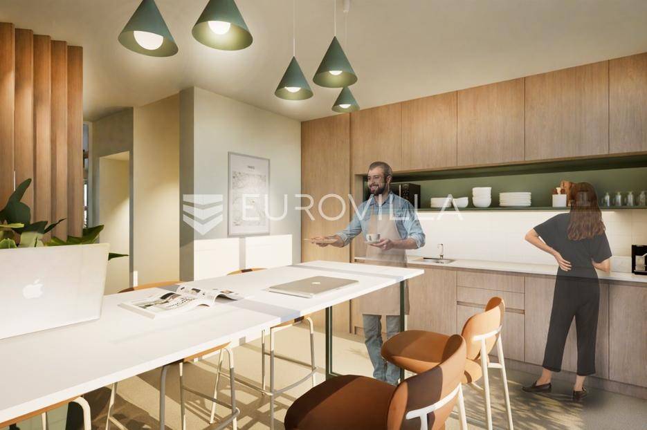 Mlinarska cesta, poslovni prostor u tri etaže obračunske površine 201 m2 od čega na stambene kvadrate otpada cca 180 m2 (3x60 m2) na parceli 350 m2. Kvalitetno izvedenog tlocrta sastoji se od:prizemlje: poseban ulaz sa ulaznim hall-om, toalet, dva ureda i garaža u zasebnom prostoru.prvi kat: ulazni hall, toalet, ured, kuhinja / manji ured sa izlazom na veliku vrtnu terasu i ljetnu kuhinju te uređen kaskadni vrt površine 165 m2drugi kat: hall, dva ureda s kupaonicama i balkon.Kuća je kompletno adaptirana prema visokim standardima, termo izo fasada, podno grijanje u kupaonicama i kuhinji, alu stolarija, protuprovalna vrata, klimatizirana, pročistać vode, podesiva tenda na terasi na automatsko upravljanje, automatsko upravljanje roletama i Z profilima, alarmni sustav, dodatna mogućnost kupovine ozonske komore itd.Izuzetna lokacija, jednosmjerna , slabije prometna ulica, 900 m od Gupčeve zvijezde, tramvaj zona, blizina svih za život bitnih sadržaja. Nekretnina je dvojni objekt i prodaje se polovica stambene zgrade koja pruža potpunu privatnost.Ostale informacije na upit.... Više na eurovilla.hr, ID: 224893