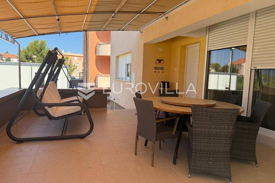 Vodice, lijepa i prostrana kuća neto korisne površine 234,15 m2 sa dodatnim građevinskim zemljištem. Kuća se nalazi na ograđenom komadu zemlje od 480 m2, a iza kuće je dodatno građevinsko zemljište od 900 m2. Prodaje se potpuno namještena i spremna za useljenje ili iznajmljivanje.Kuća se sastoji od dvije etaže. U prizemlju se nalazi prostrani dnevni boravak sa kuhinjom i blagovaonicom, kupaonica, WC i dvije sobe od kojih jedna služi kao radna soba. Na katu se nalaze tri spavaće sobe i kupaonica. Master soba ima privatnu kupaonicu i veliki walk in ormar. U prizemlju je još i strojarnica u koju se ulazi izvana.Kuća se nalazi na odličnoj lokaciji, 400 metara od mora, te samo par minuta hoda od centra Vodica. Svi biti sadržaji nalaze se u blizini kuće.Za sve ostale informacije stojimo vam na raspolaganju.... Više na eurovilla.hr, ID: 275629