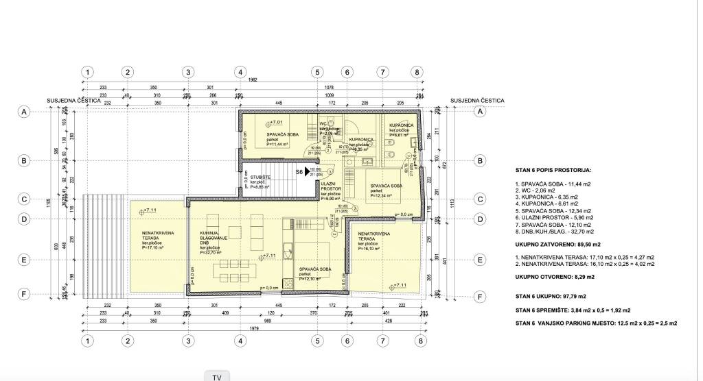 Zagreb, Srednjaci, prekrasan četverosoban stan na drugom katu od 97,79 m2.Stan 6 - 97,79 m²Prodaje se luksuzan stan površine 97,79 m² u novogradnji, s prostranim rasporedom i visokim standardom gradnje. Stan se sastoji od:spavaća soba: 11,44 m²spavaća soba: 12,34 m²spavaća soba: 12,10 m²WC: 2,06 m²kupaonica: 6,35 m²kupaonica: 6,61 m²ulazni prostor: 5,90 m²dnevni boravak/kuhinja/blagovaonica: 32,70 m²Dodatno:nenatkrivena terasa 1: 4,27 m²nenatkrivena terasa 2: 4,02 m²spremište: 1,92 m²vanjsko parkirno mjesto: 2,5 m²natkriveno parkirno mjesto 3,6m2Stanovi su projektirani po najvišim standardima i odlikuju se:dizalicama topline za grijanje i hlađenjeklimama u svakom stanuPVC dvoslojnom stolarijom za optimalnu izolacijunajkvalitetnijim materijalimamaksimalnom energetskom učinkovitošćusvaki stan ima svoje spremište i vanjsko parkirno mjestoLokacija:Kvart nudi sve pogodnosti za obiteljski život - od škola, vrtića i parkova do trgovina i kafića. Prometna povezanost omogućava brz pristup svim dijelovima Zagreba.Srednjaci su kvart u kojem dominiraju zelene površine, sportski sadržaji i mirni dijelovi idealni za šetnju i opuštanje. Ovo je savršena lokacija za mlade obitelji koje traže sigurno i kvalitetno okruženje za život.Za više informacija ili dogovor o razgledu, slobodno nas kontaktirajte!... Više na eurovilla.hr, ID: 277895