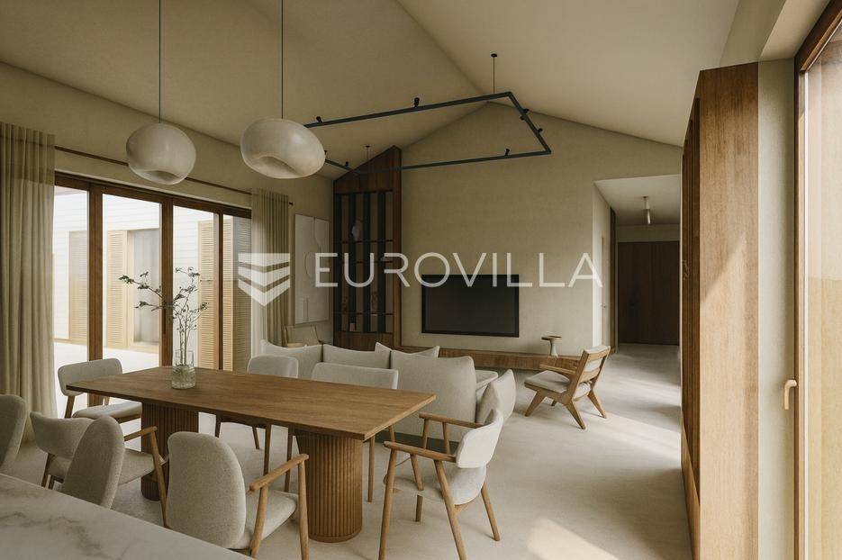 Na jedinstvenoj lokaciji u Starigradu na otoku Hvaru, u neposrednoj blizini mora i centra grada, nude se dvije iznimne luksuzne prizemnice na istoj parceli površine 1.444 m². Ove ekskluzivne nekretnine predstavljaju savršen spoj suvremene arhitekture, vrhunske kvalitete i mediteranskog načina života.Svaka vila ima bruto površinu od 194,2 m² i neto korisnu površinu od 151,9 m², a elegantno su povezane kroz garaže, što osigurava funkcionalnost i privatnost. Pažljivo osmišljeni raspored prostora pruža savršenu ravnotežu između komfora i estetike.Interijeri uključuju prostrane i moderno opremljene kuhinje povezane s dnevnim boravcima i blagovaonicama otvorenog koncepta, hodnike, gostinjske WC-e, privatne teretane, tri udobne spavaće sobe i tri luksuzno uređene kupaonice po svakoj vili. Izravna povezanost unutarnjeg i vanjskog prostora dodatno naglašava osjećaj prostranosti i svjetlosti.Eksterijer je jednako impresivan, s pažljivo uređenim okolišem koji uključuje vanjski bazen i prostrano sunčalište po svakoj vili. Svi korišteni materijali i oprema unutar nekretnina su vrhunskog standarda, birani s naglaskom na kvalitetu, trajnost i sofisticirani dizajn.Planirani završetak gradnje i useljenje predviđeni su za ljeto 2026. godine.Ove nekretnine predstavljaju rijetku priliku za investiciju ili privatnu oazu mira na jednoj od najpoželjnijih jadranskih destinacija.Više informacija na upit.... Više na eurovilla.hr, ID: 285587
